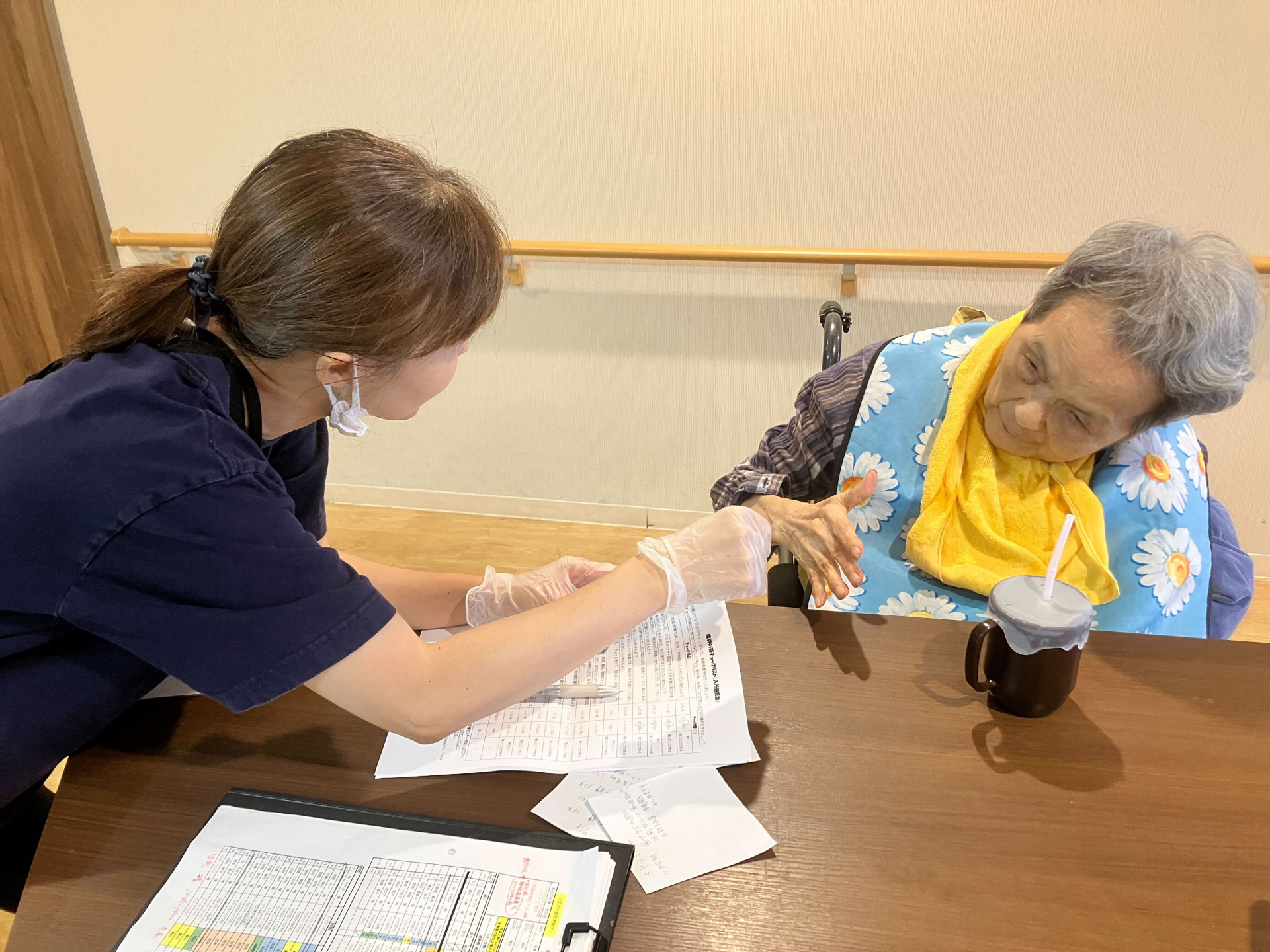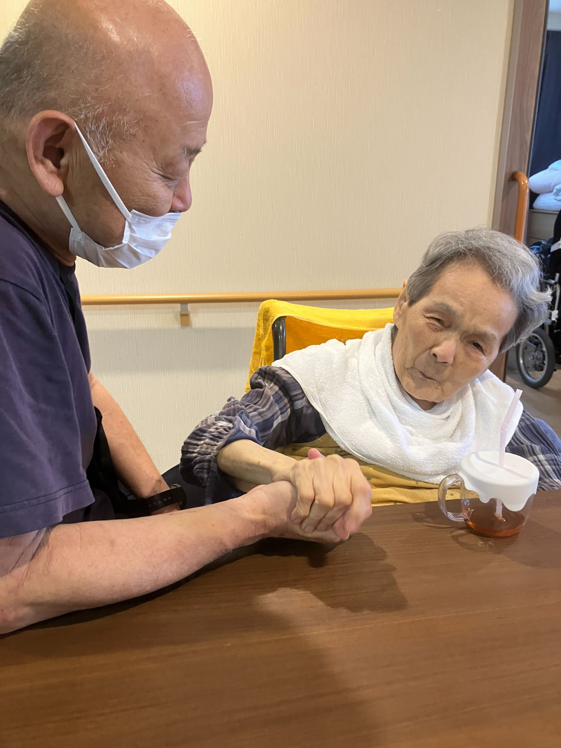 H職員とジャンケン勝負を楽しまれておられるS様(*^^*)