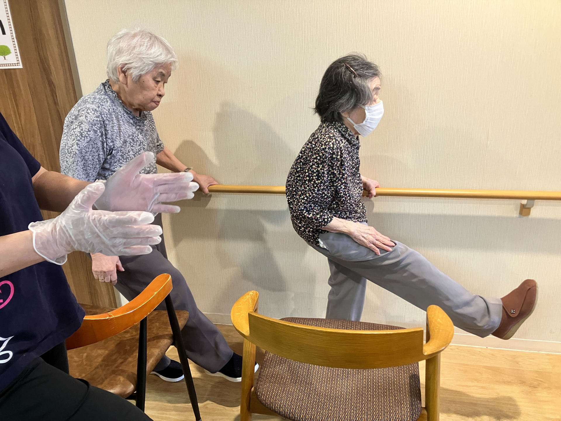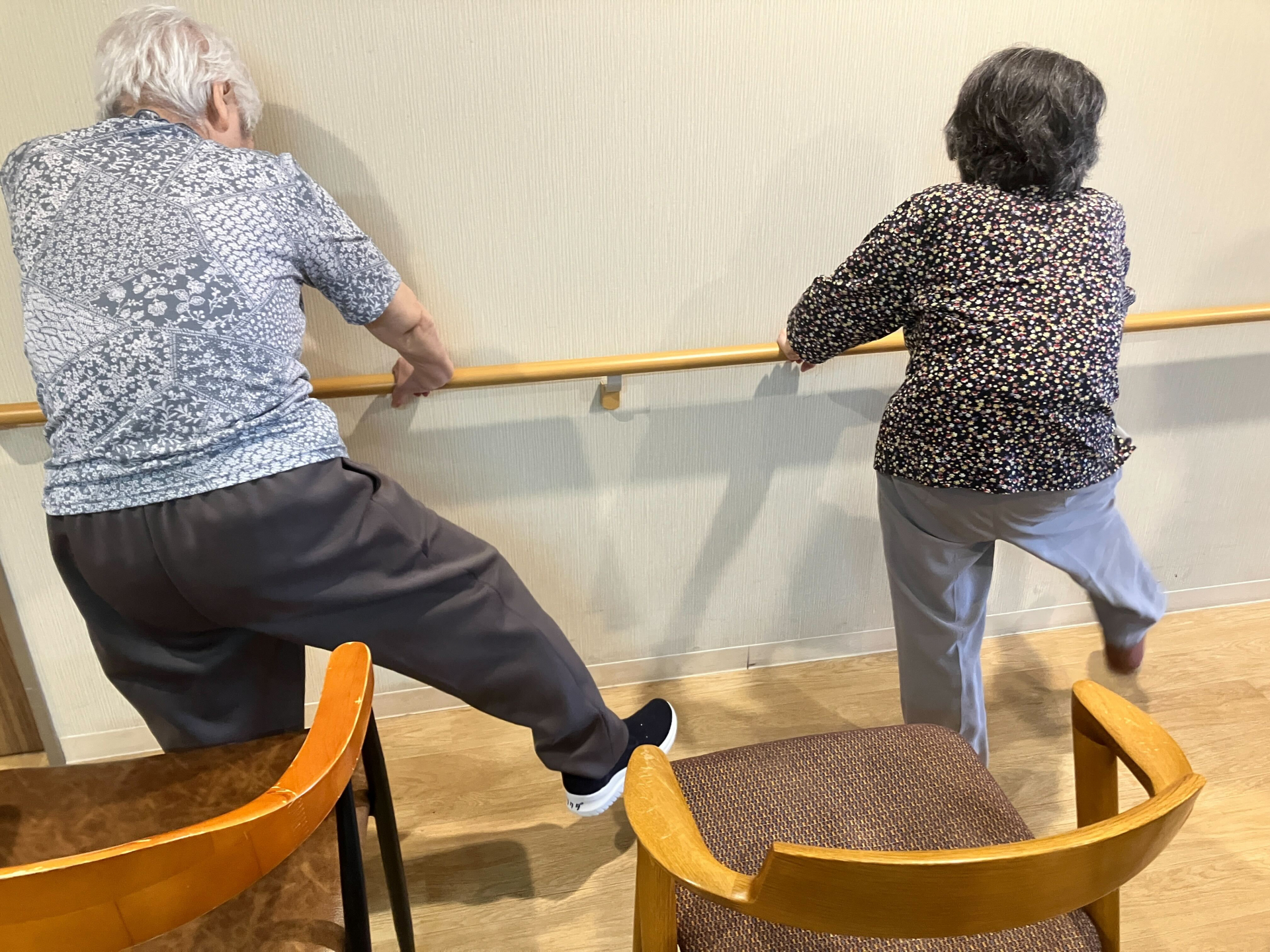 手すりにつかまりながら足上げ運動に取り組んでいただきました♬