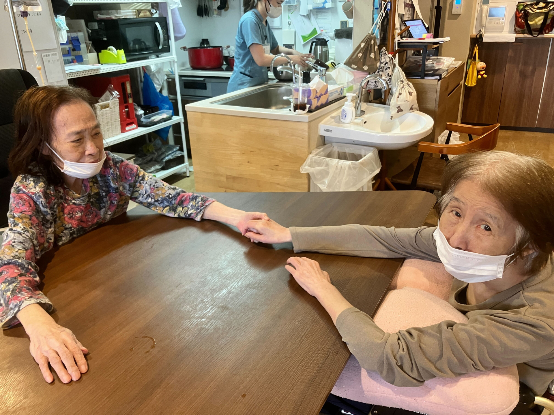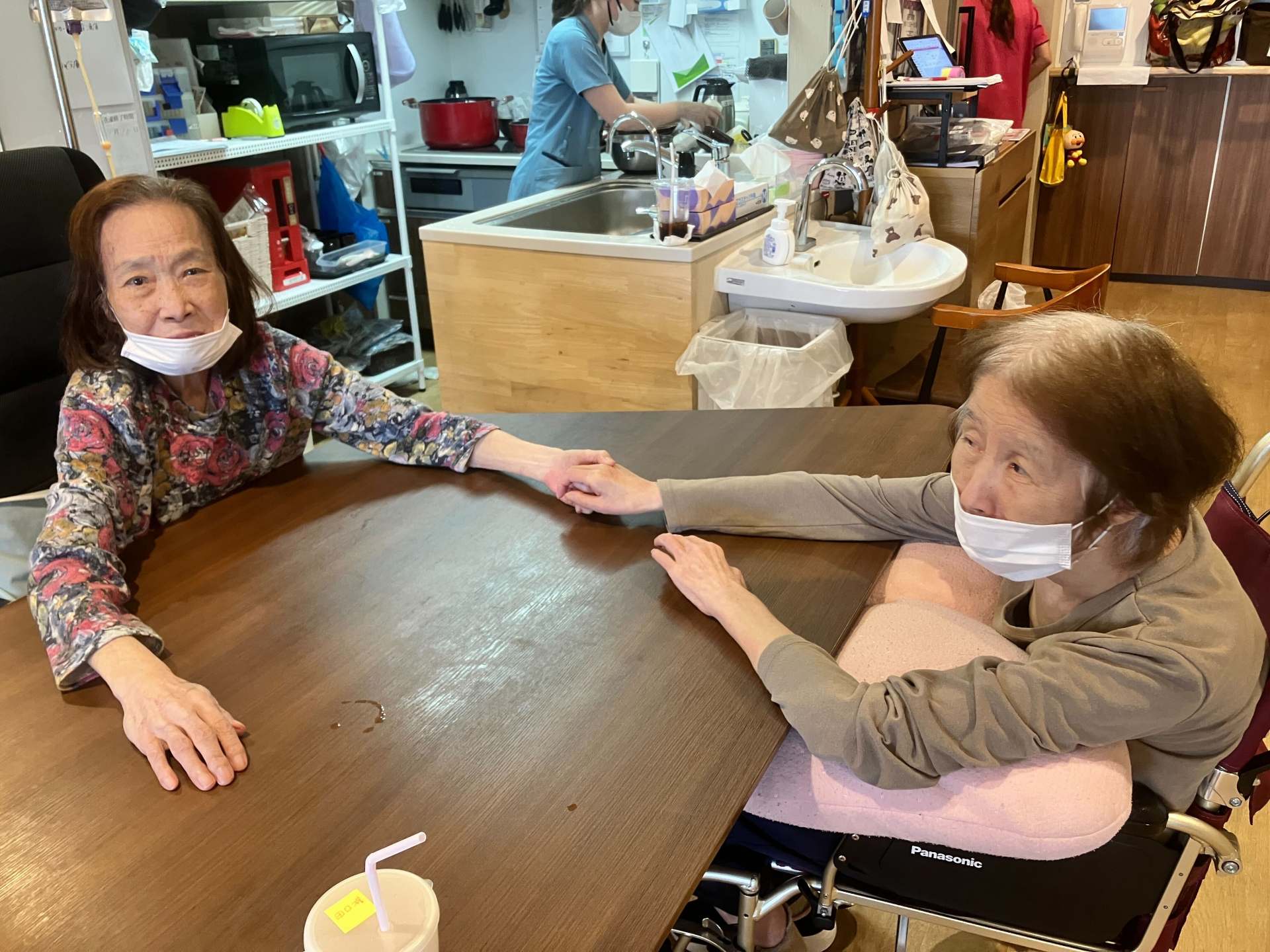 お二人共ニコニコと手を伸ばして