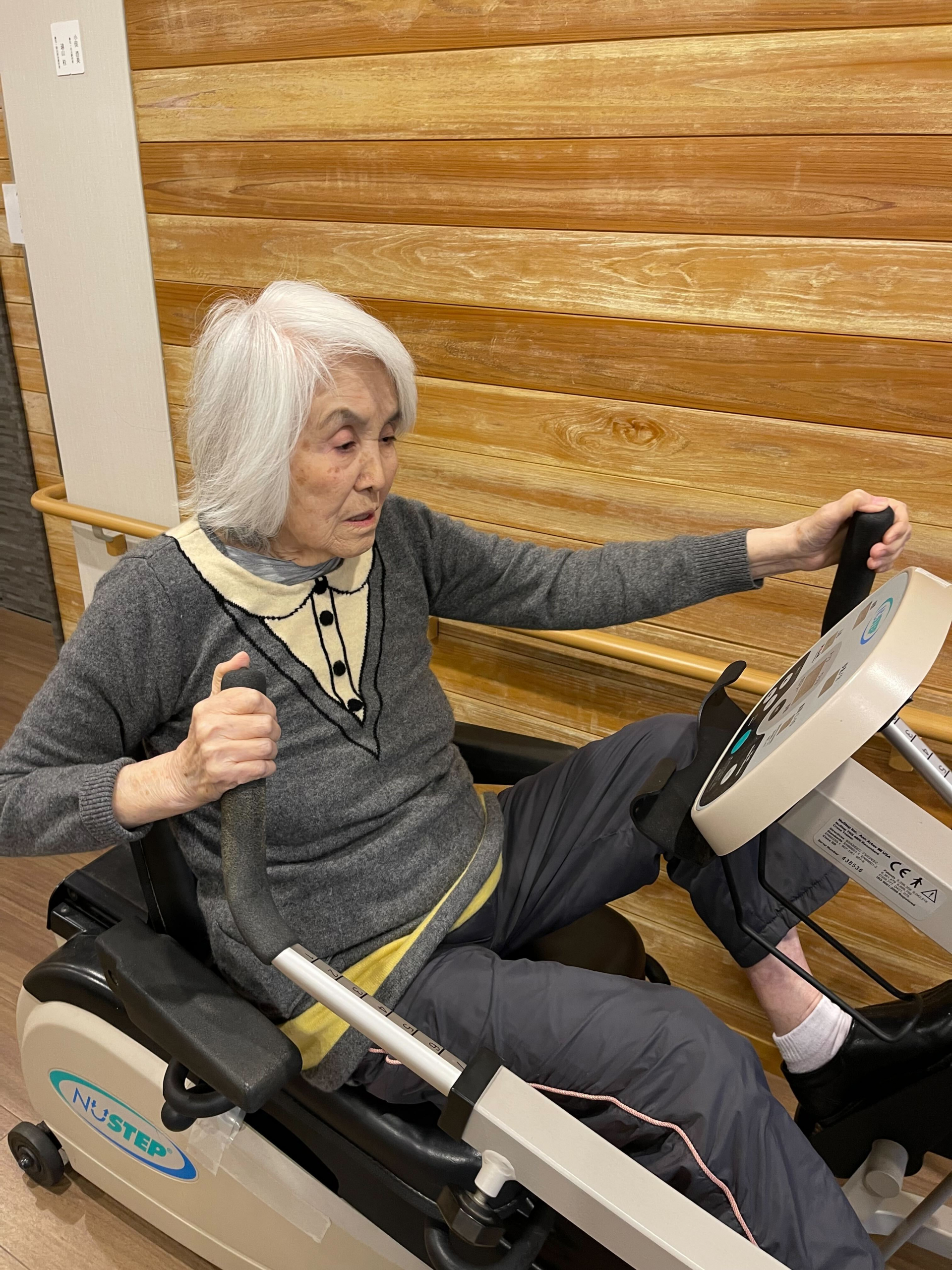 時折、歩行バーやバイクマシンに取り組まれるM様(女性)とS様(男性)