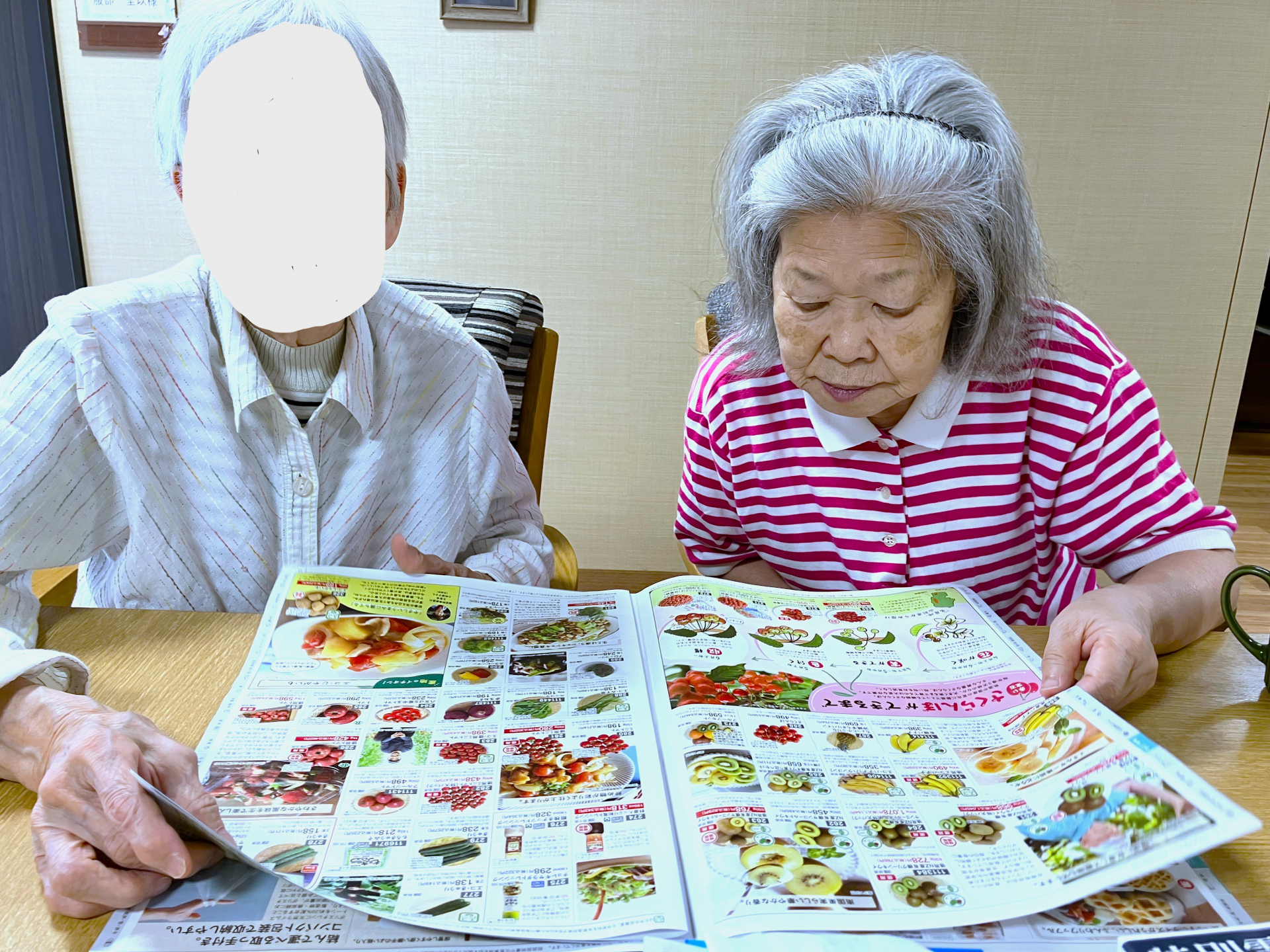 2024.06.13 活動報告(IN) 3階 日中のご様子 Tweet シェアする チラシを見ながら、好きな果物やお菓子などを選んで注文します。 前の記事 2024.06.14 活動報告(IN) 今日のお昼です。 次の記事 2024.06.11 活動報告(IN) 3階 音楽活動のご様子 一覧へ戻る