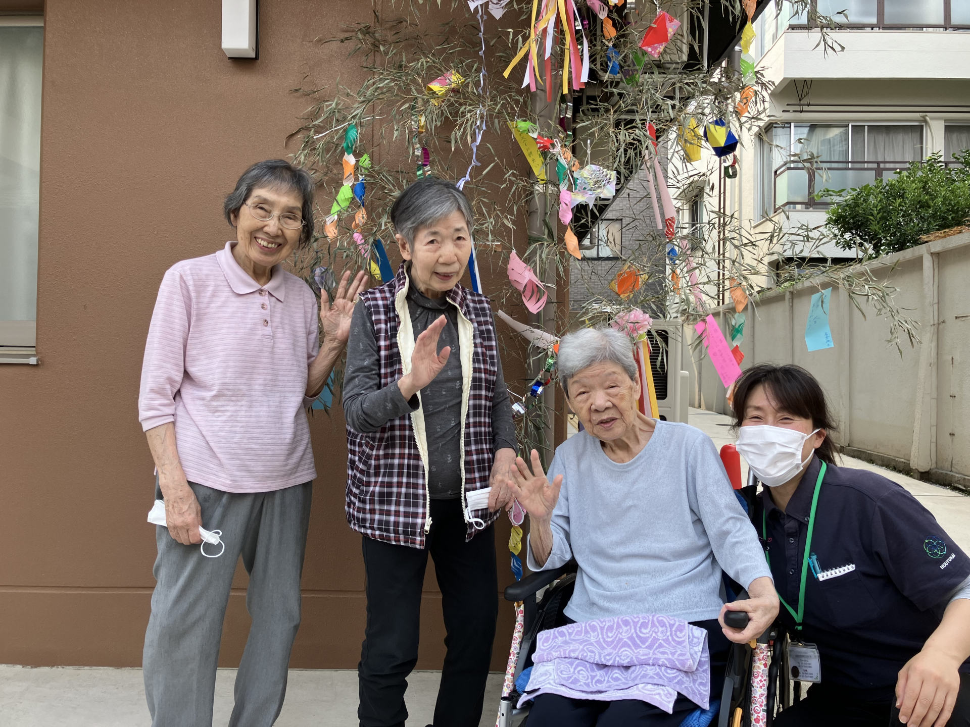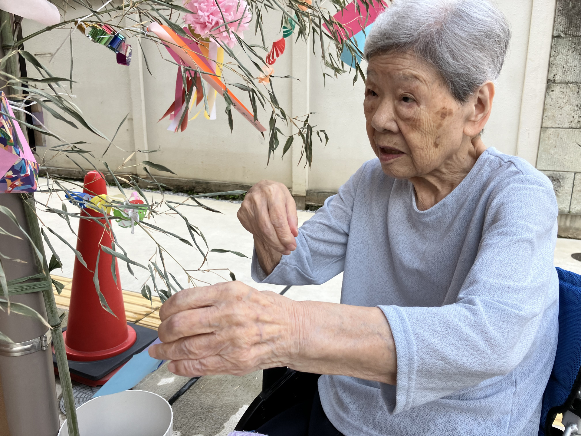 日差しだけでなく、風もある中でも短冊を結んでくださいました