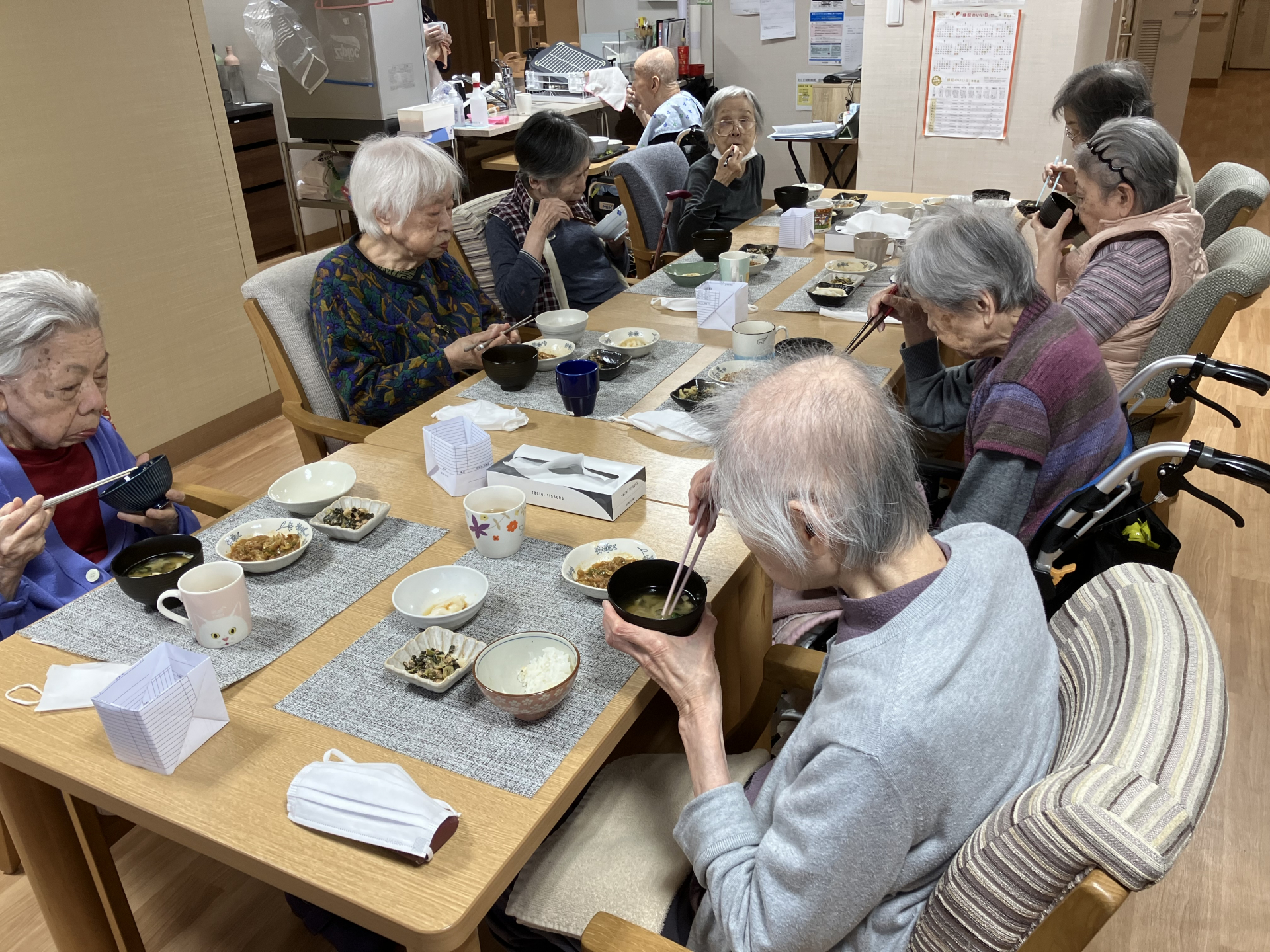 2025.01.31 活動報告(IN) 2階 お食事のご様子 Tweet シェアする お食事のご様子になります 夕食の水餃子は皆様お好みで調味料を加えていました 美味しく召し上がってくださいました 皆様お変わりなく過ごされています 優っくりグループホーム豊島南長崎 船山 前の記事 2025.01.31 活動報告(IN) 2階 食後のご様子 次の記事 2025.01.24 活動報告(IN) 3階おやつ作りのご様子 一覧へ戻る