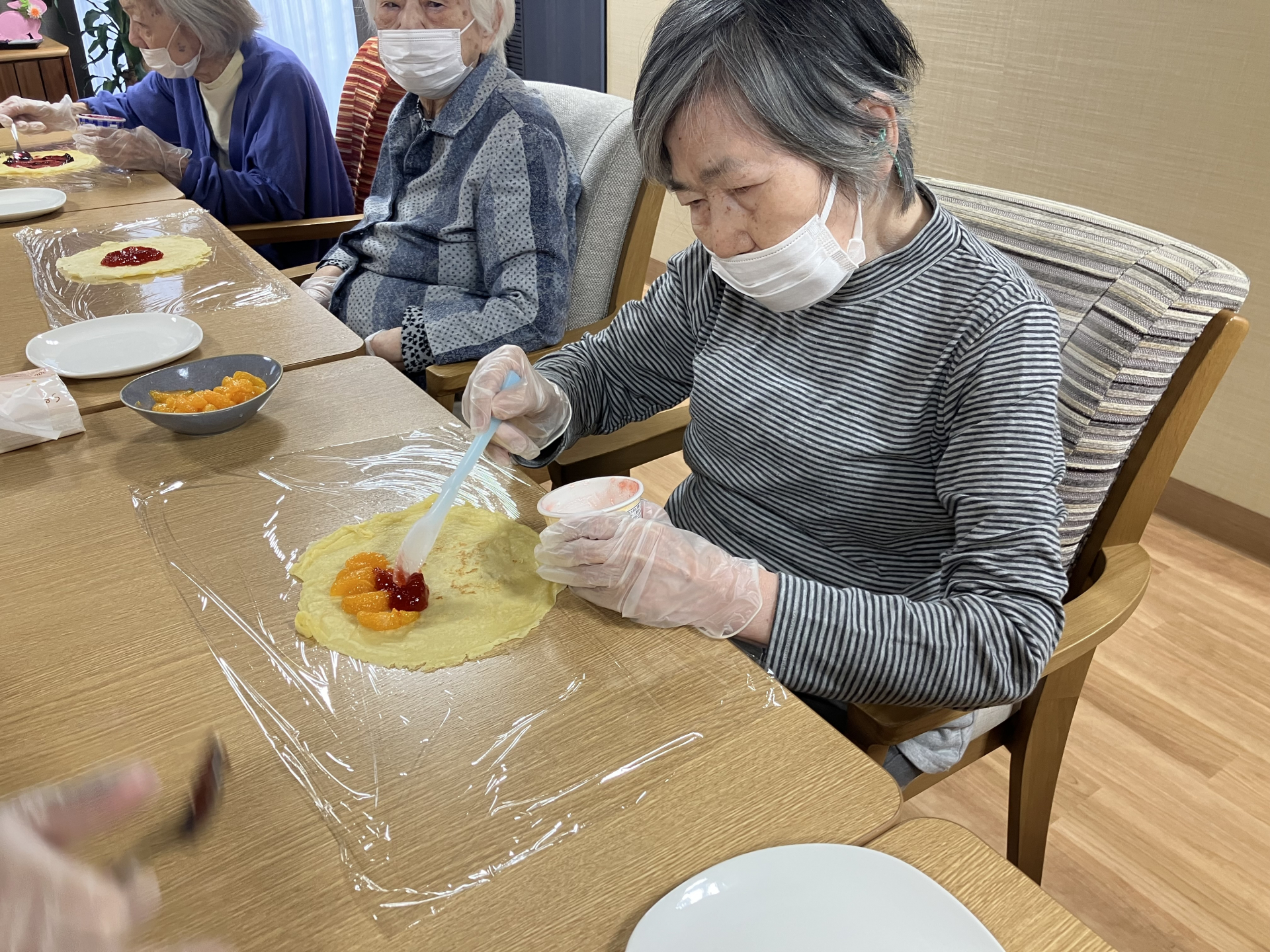 2025.02.25 活動報告(IN) 2階 クレープづくり④ Tweet シェアする クレープの具材を盛り付けてくださいました フルーツとジャムを選んでいます 生クリームを絞っています 優っくりグループホーム豊島南長崎 船山 前の記事 2025.02.25 活動報告(IN) 2階 クレープづくり⑤ 次の記事 2025.02.25 活動報告(IN) 2階 クレープづくり③ 一覧へ戻る
