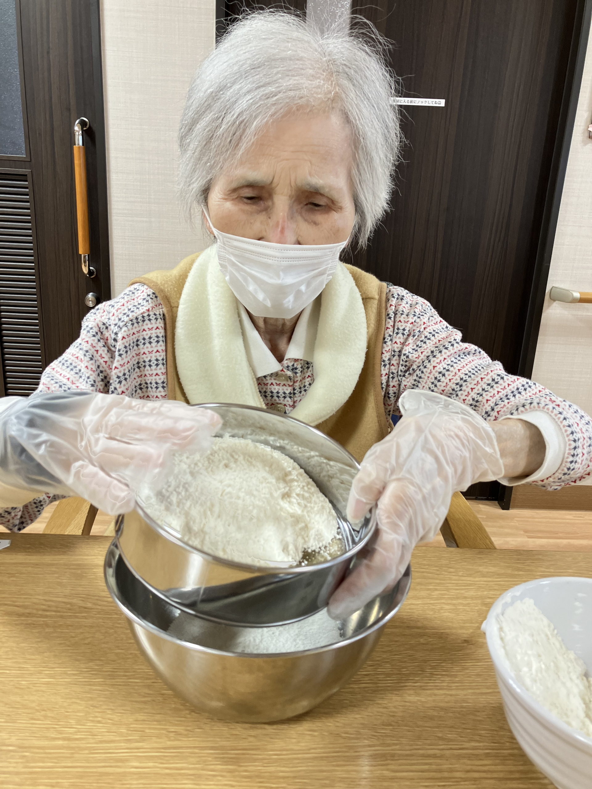 テーブルを拭いていただき、キッチンでは調理をします。