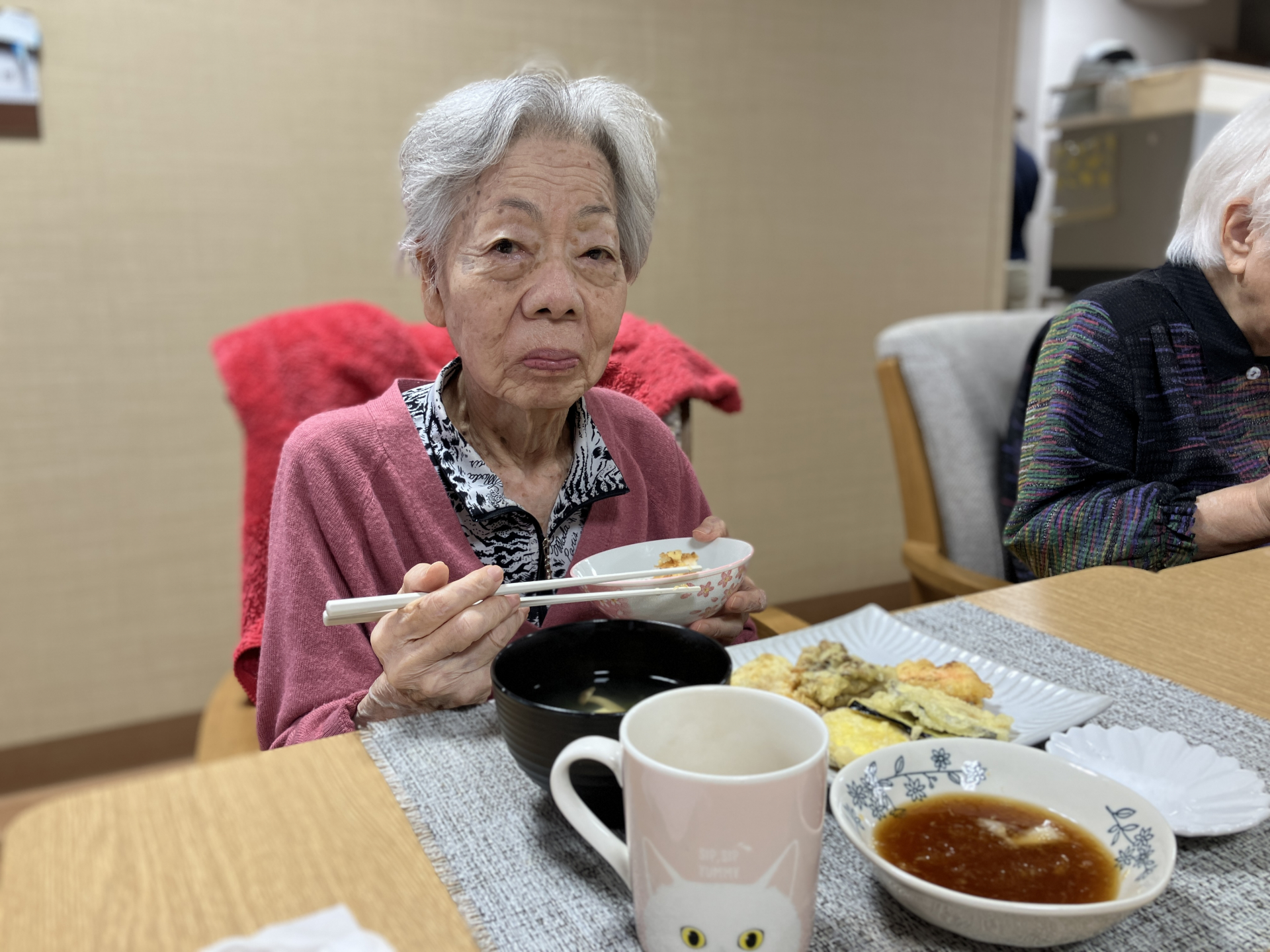 出来上がった天ぷらを皆様に召し上がっていただきました