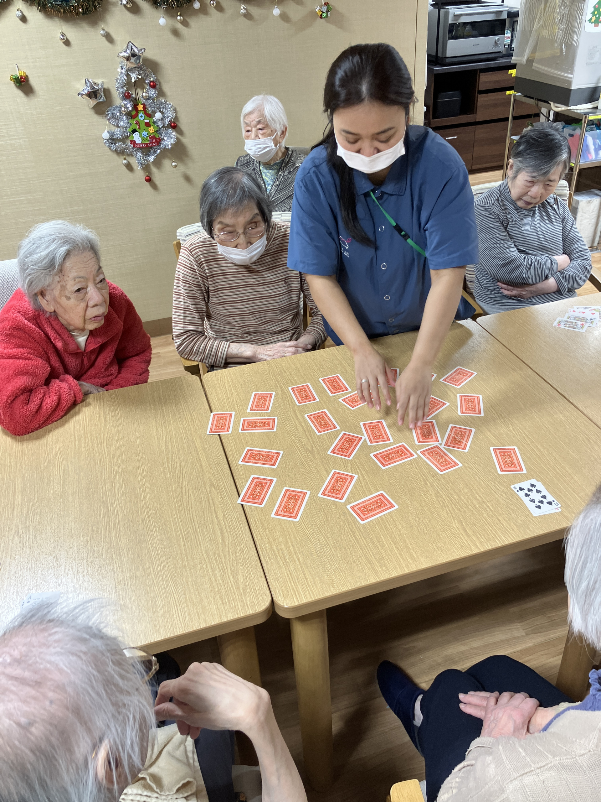 クリスマス会の準備の後にはトランプでババ抜きや神経衰弱を行っていました。