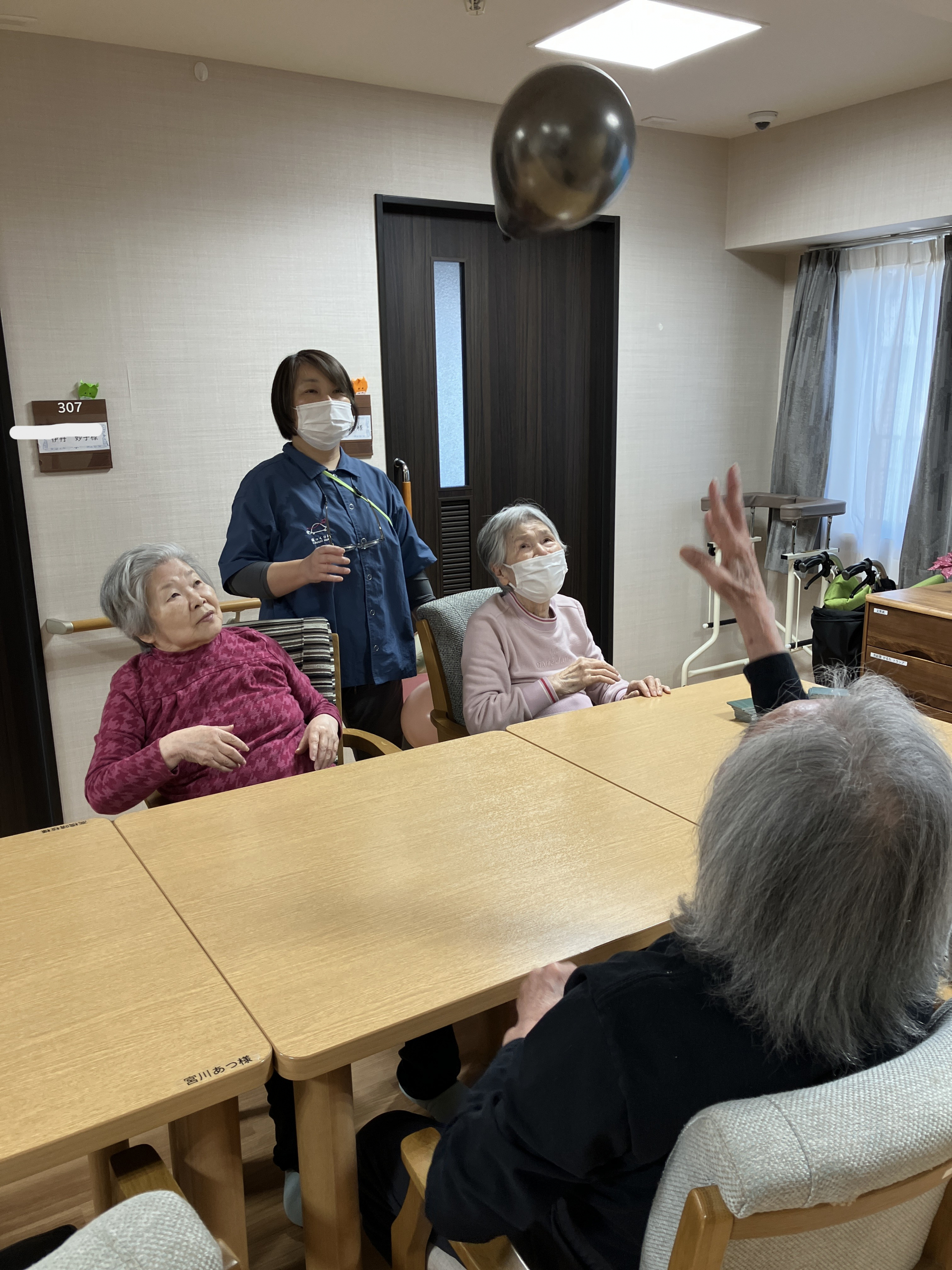 フロアーでは風船バレーが行われています。運動にもなりそうです。
