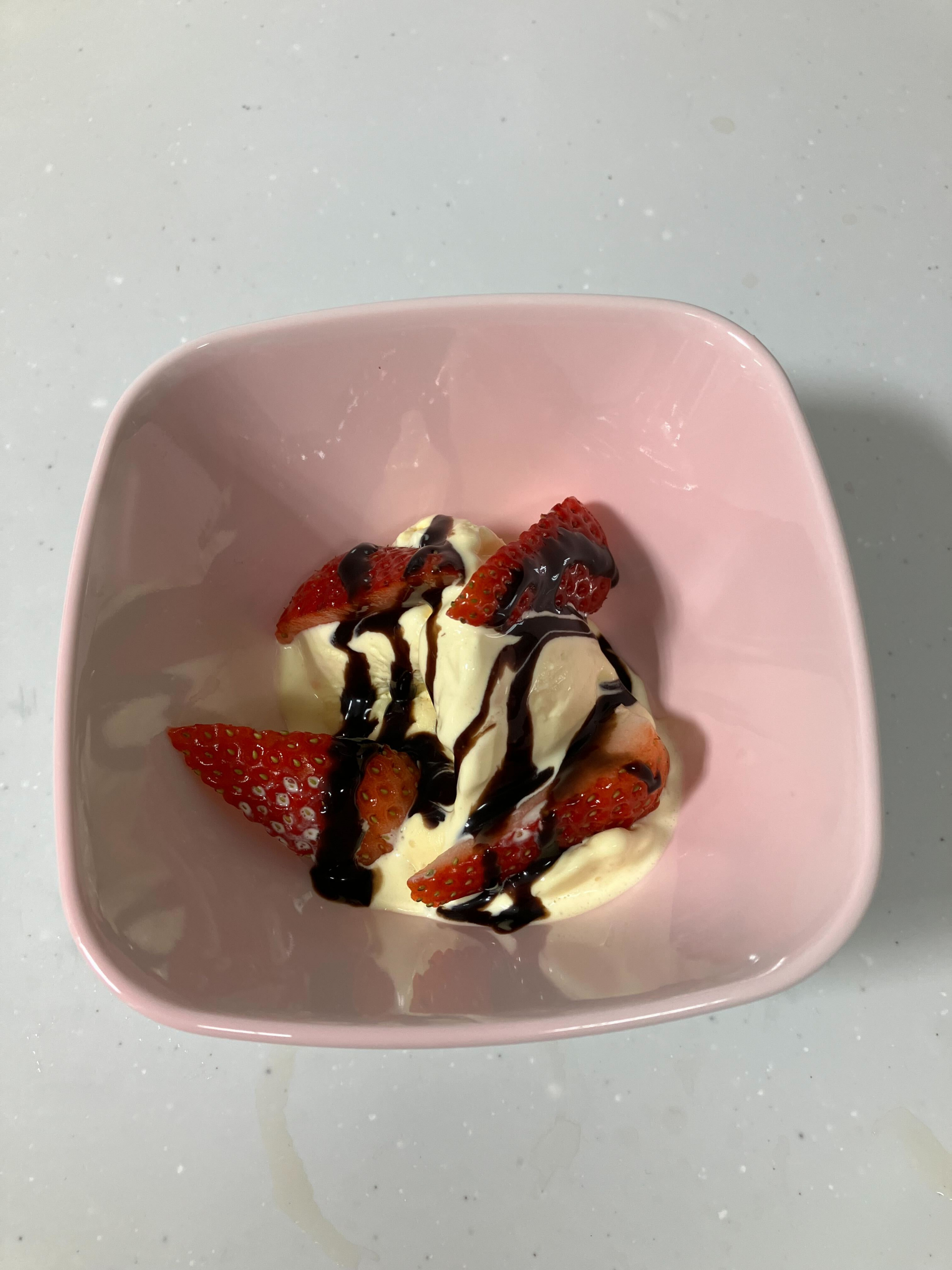 たくさんお手伝いしていただいたので、おやつは「イチゴ&アイス」です♪