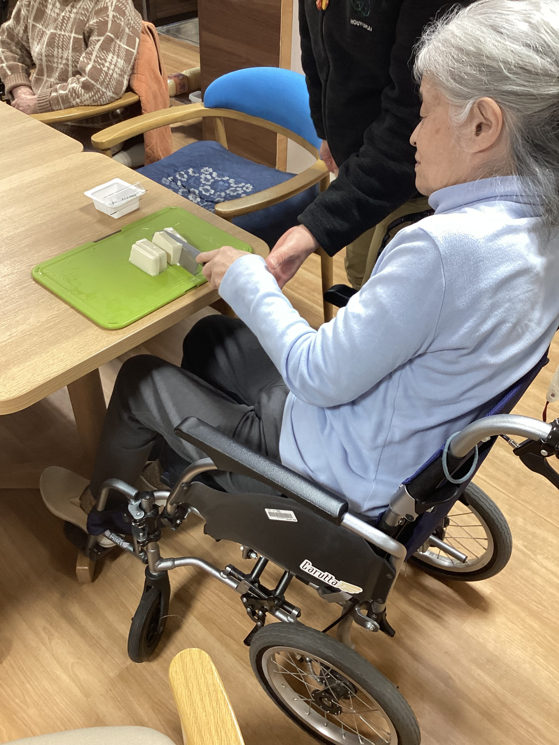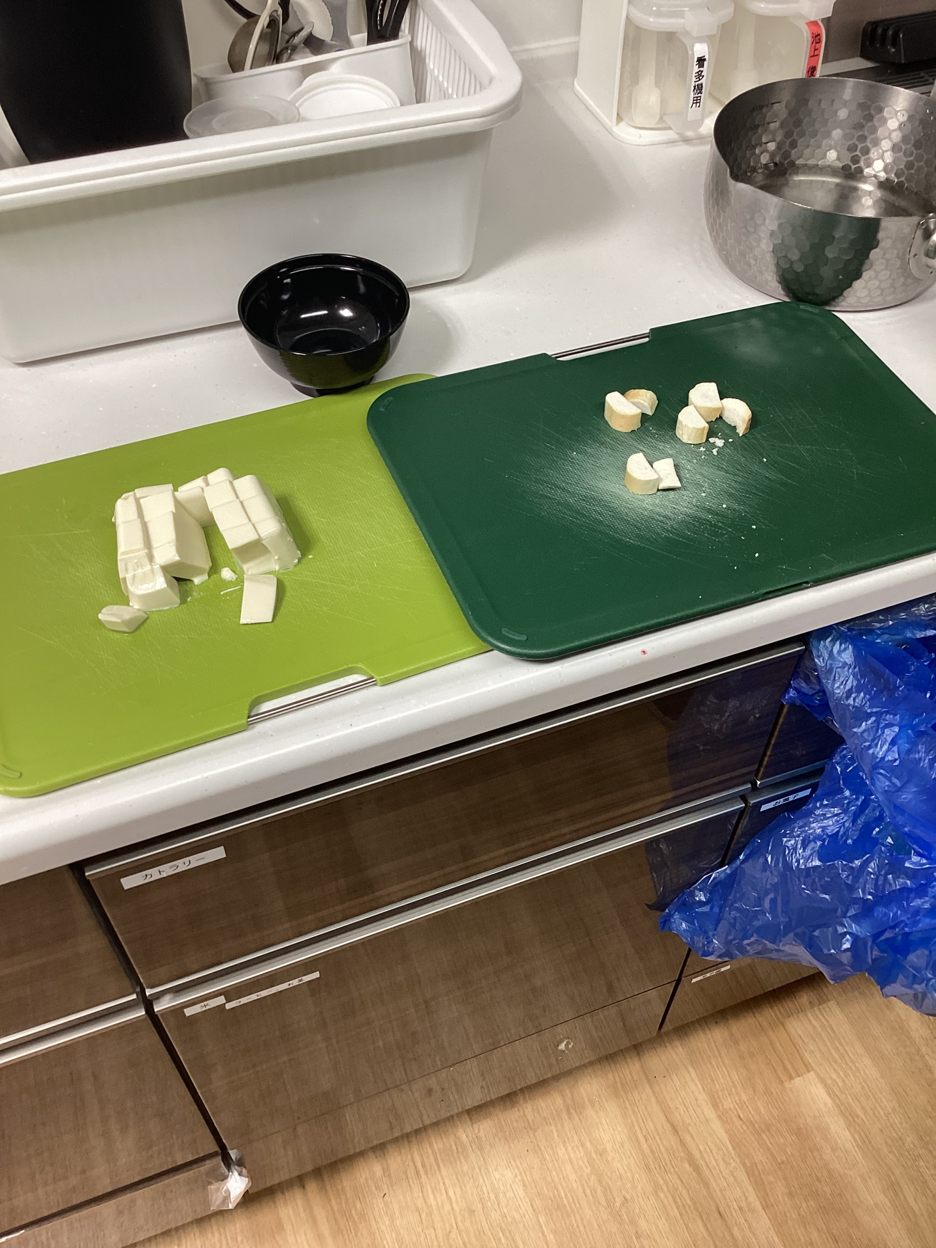 今日のお味噌汁の具材をK様にカットしていただきました(^O^)