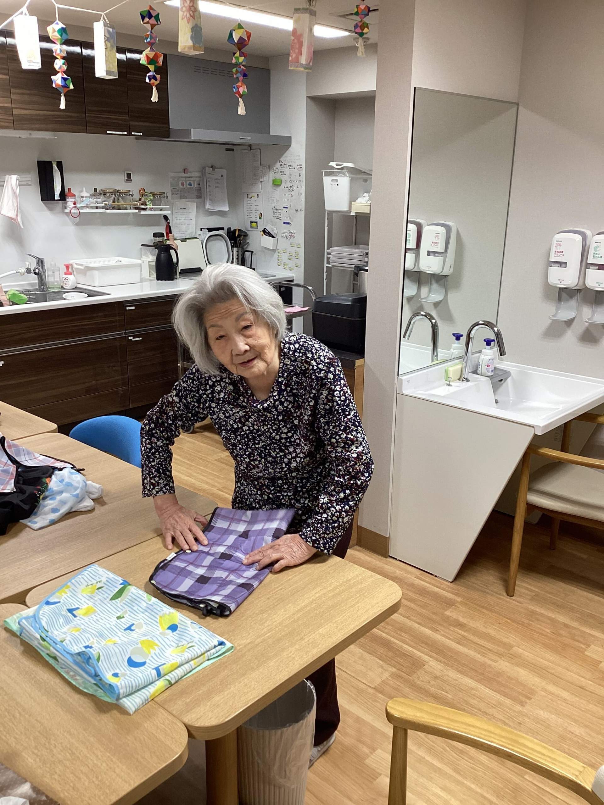 フロアではすでに起きているA様が洗濯物をたたんでくださっています(^^♪