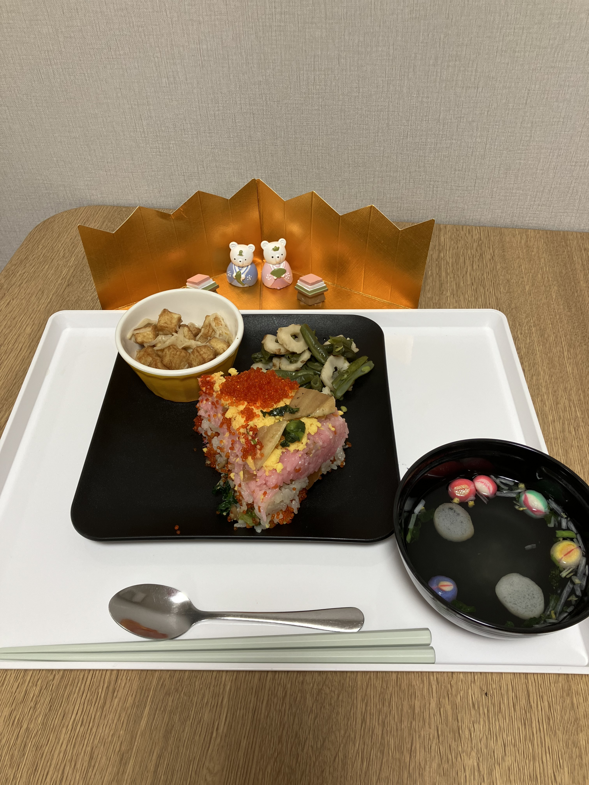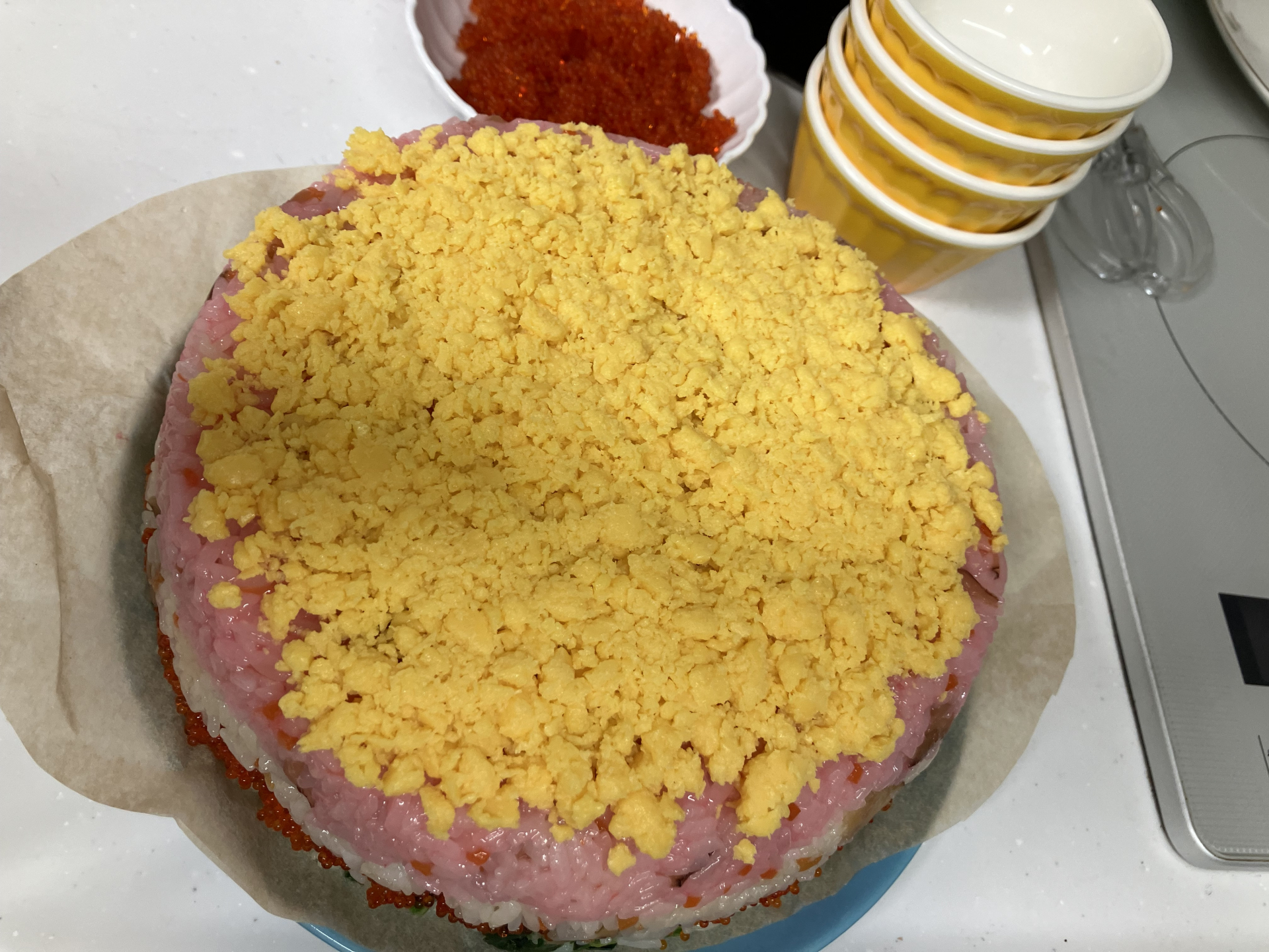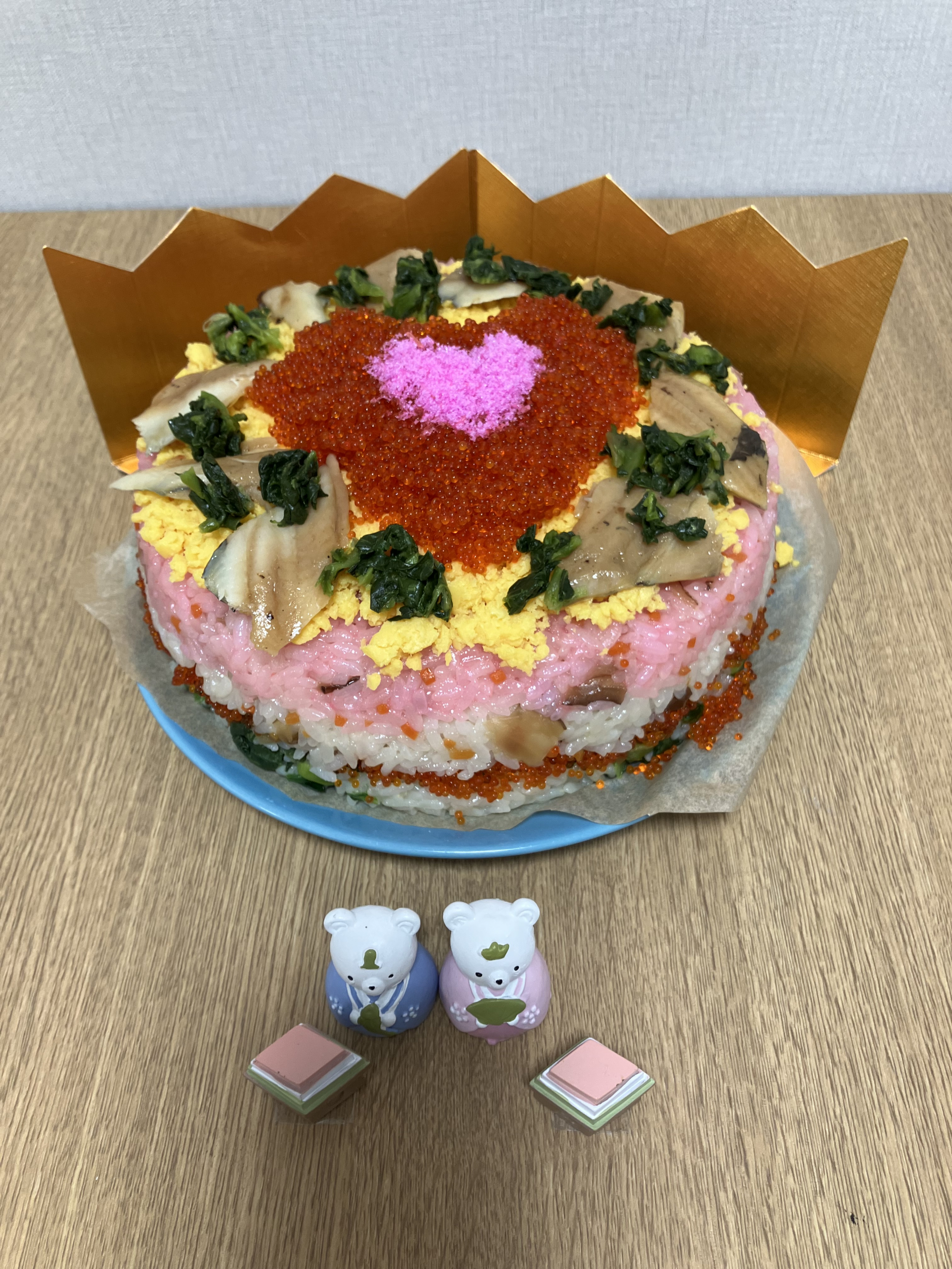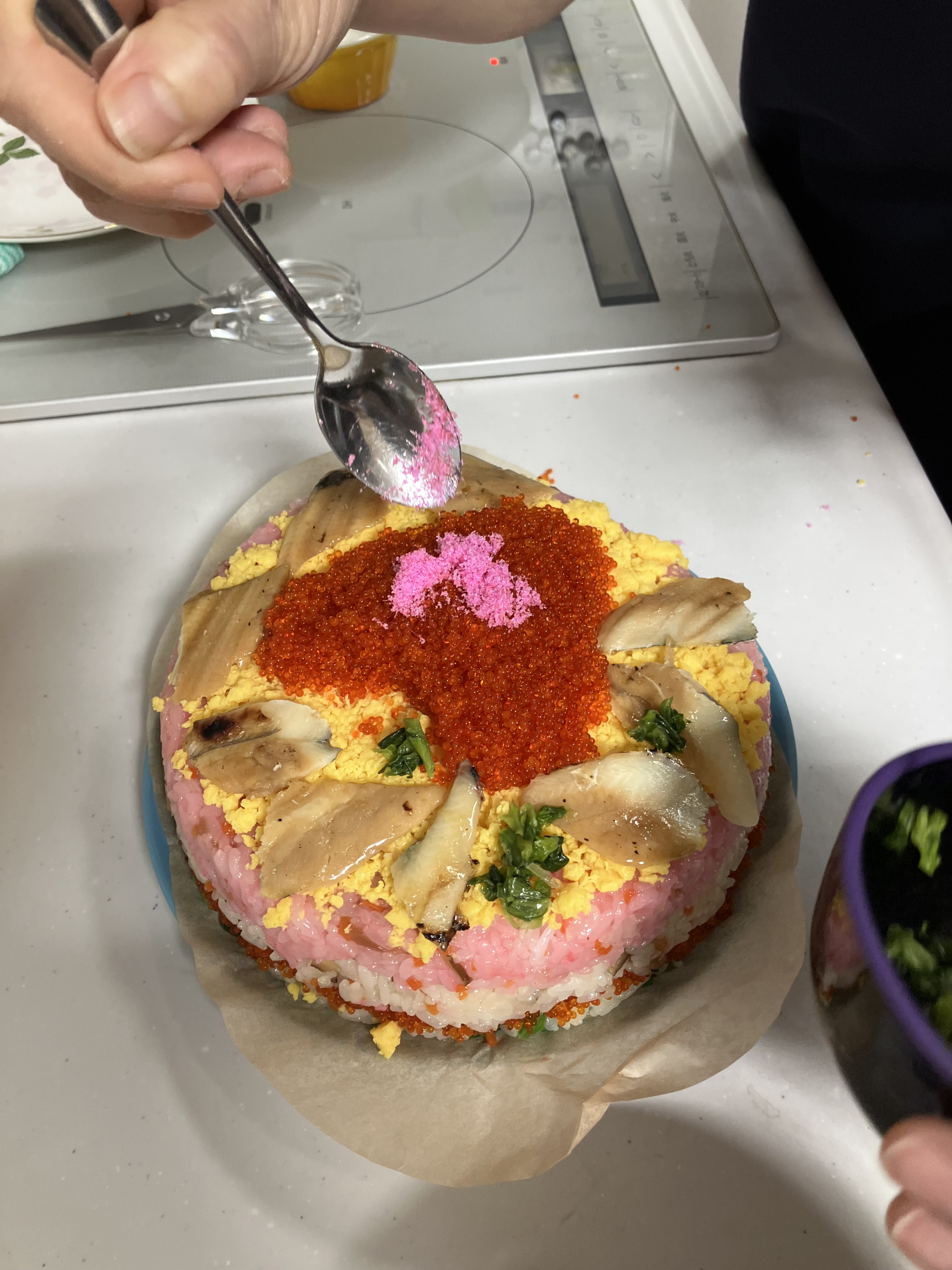 まず第一弾、三色ちらし寿司でお祝いです(^O^)