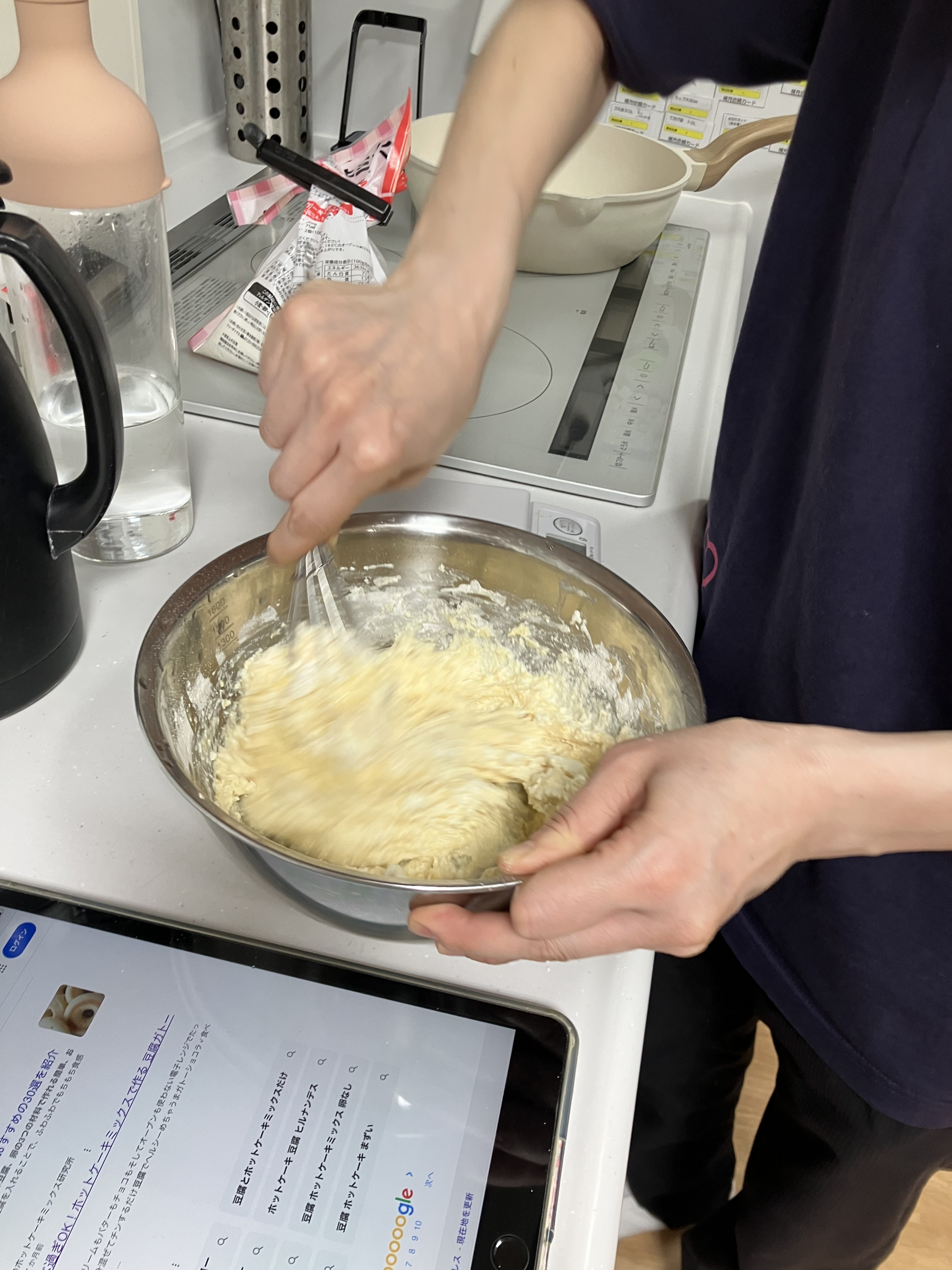 職員がiPadを見ながらガトーショコラを作っています(^O^)