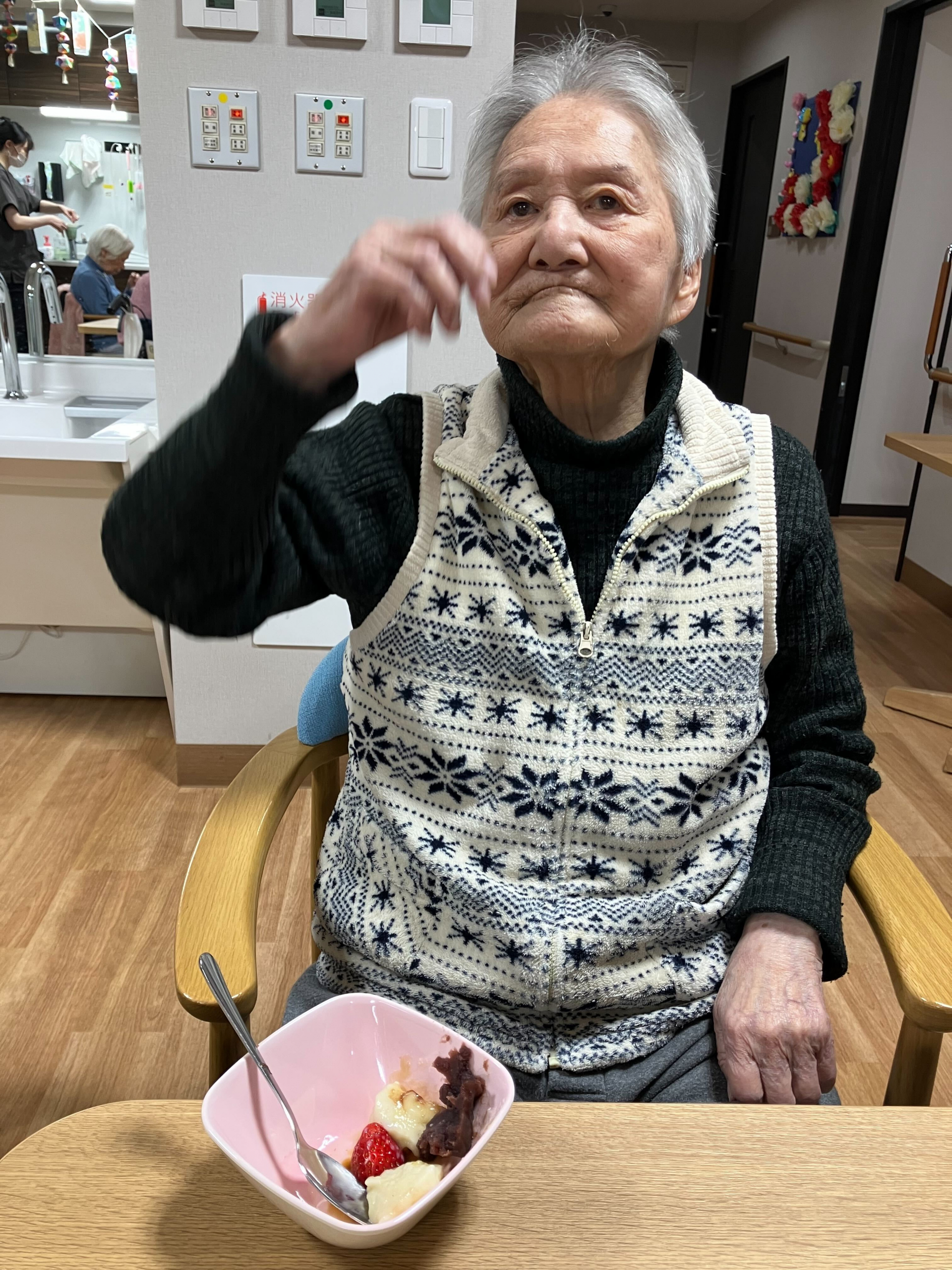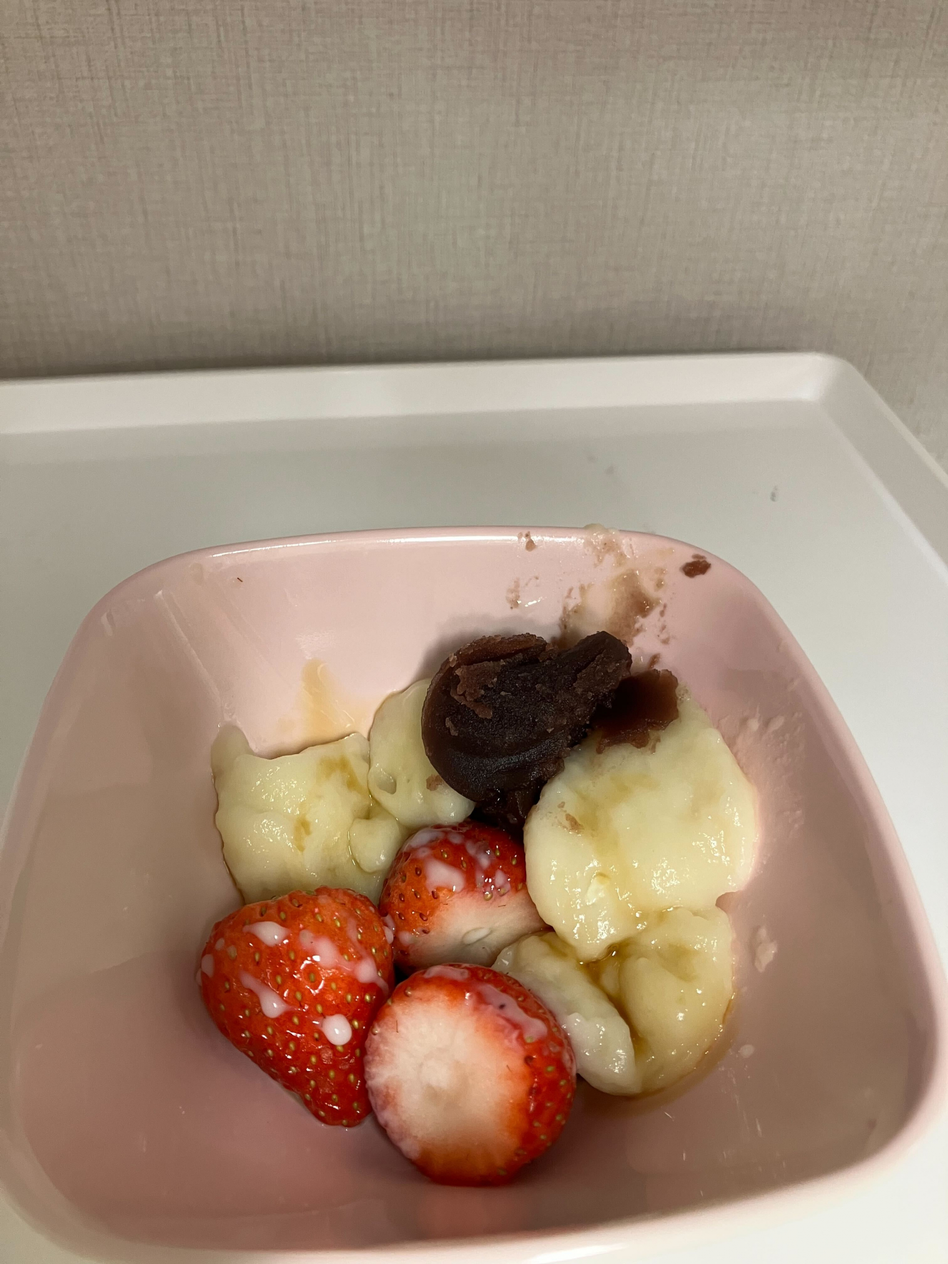 いちごも切ってくださり、出来上がったのが「あんみつ風白玉いちご」です(^^)v