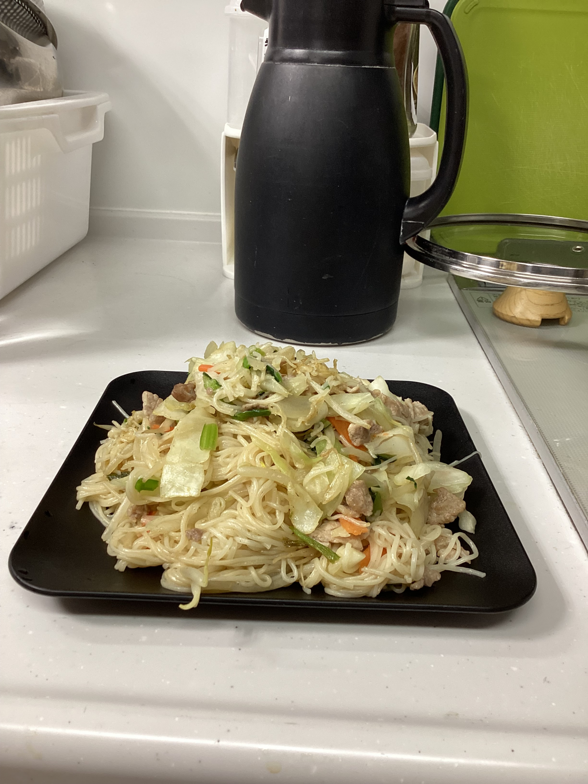 昼食に「ソーメンチャンプルー風」を作っています(^O^)