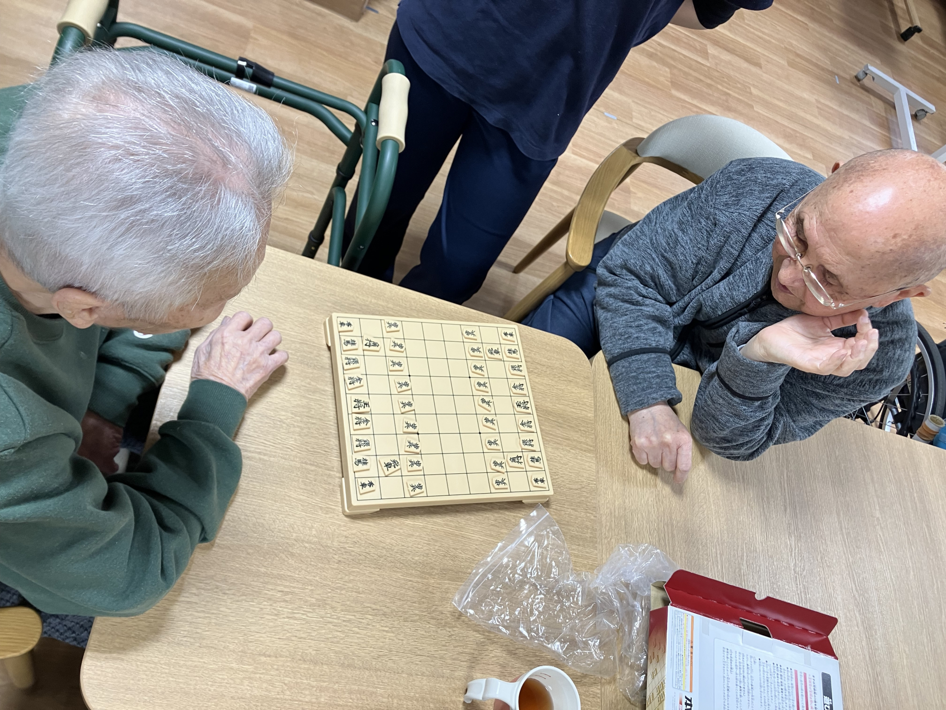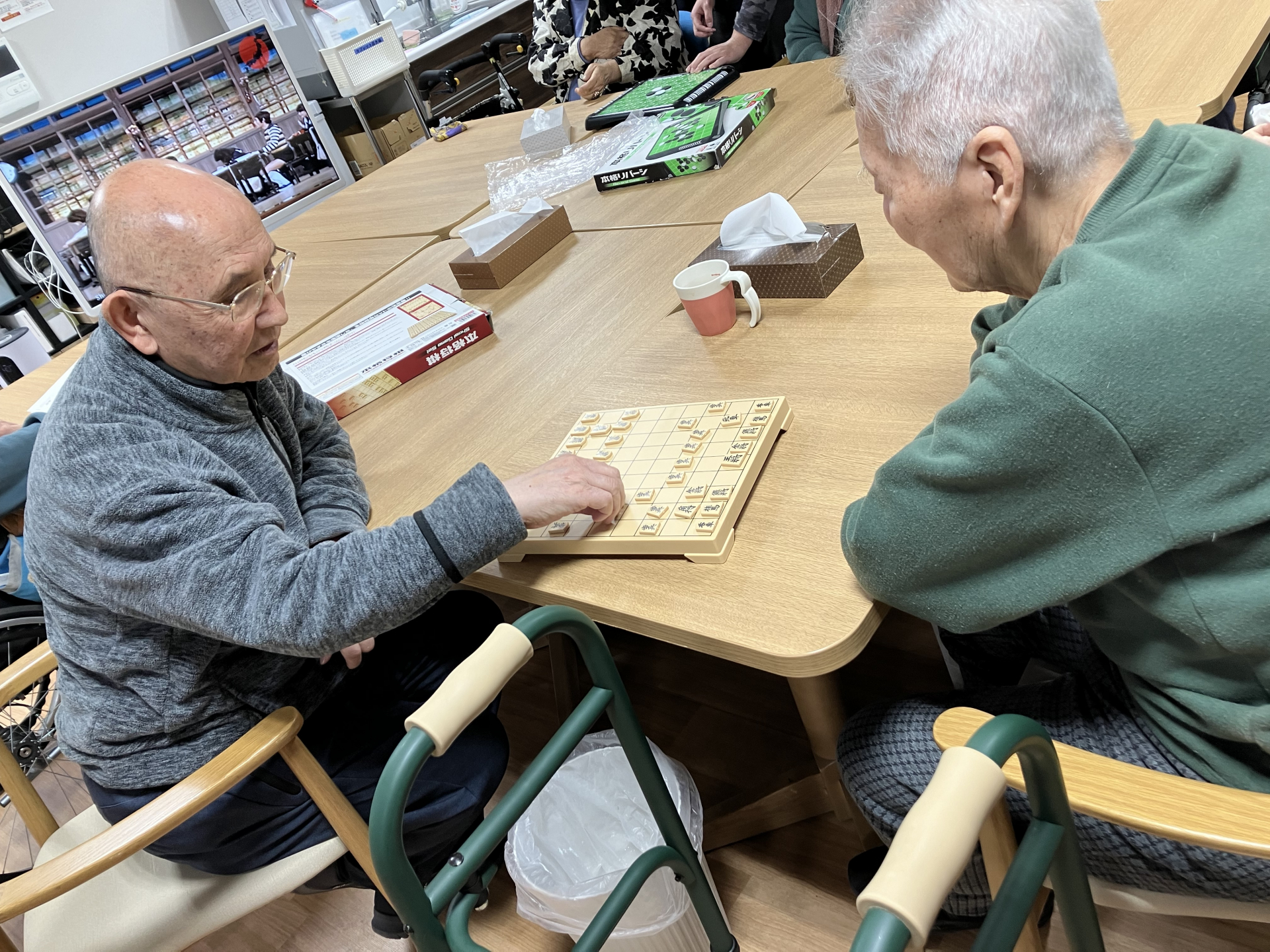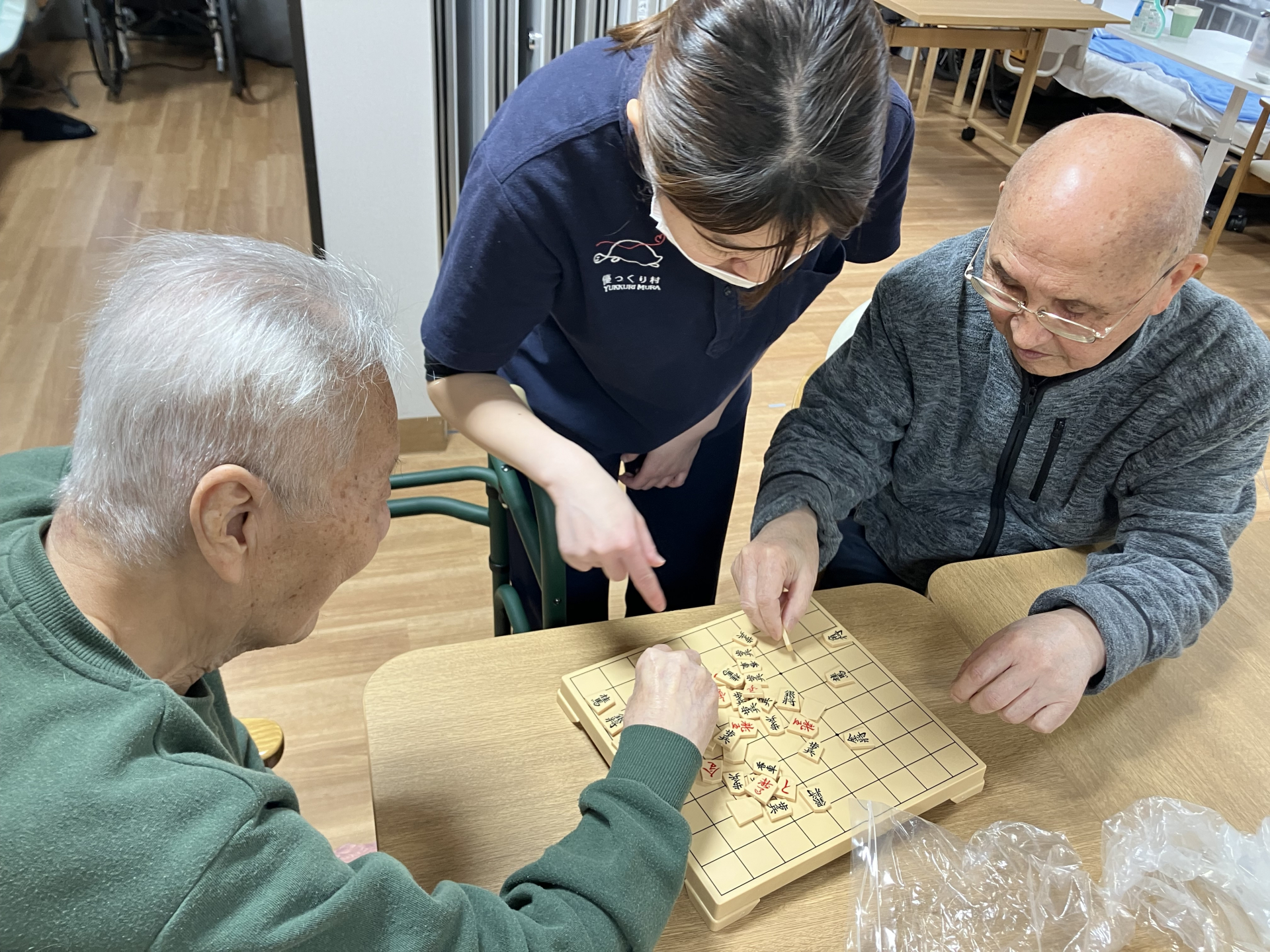 佐伯職員がお二人に並べ方から教えてもらっているようです(^^)v