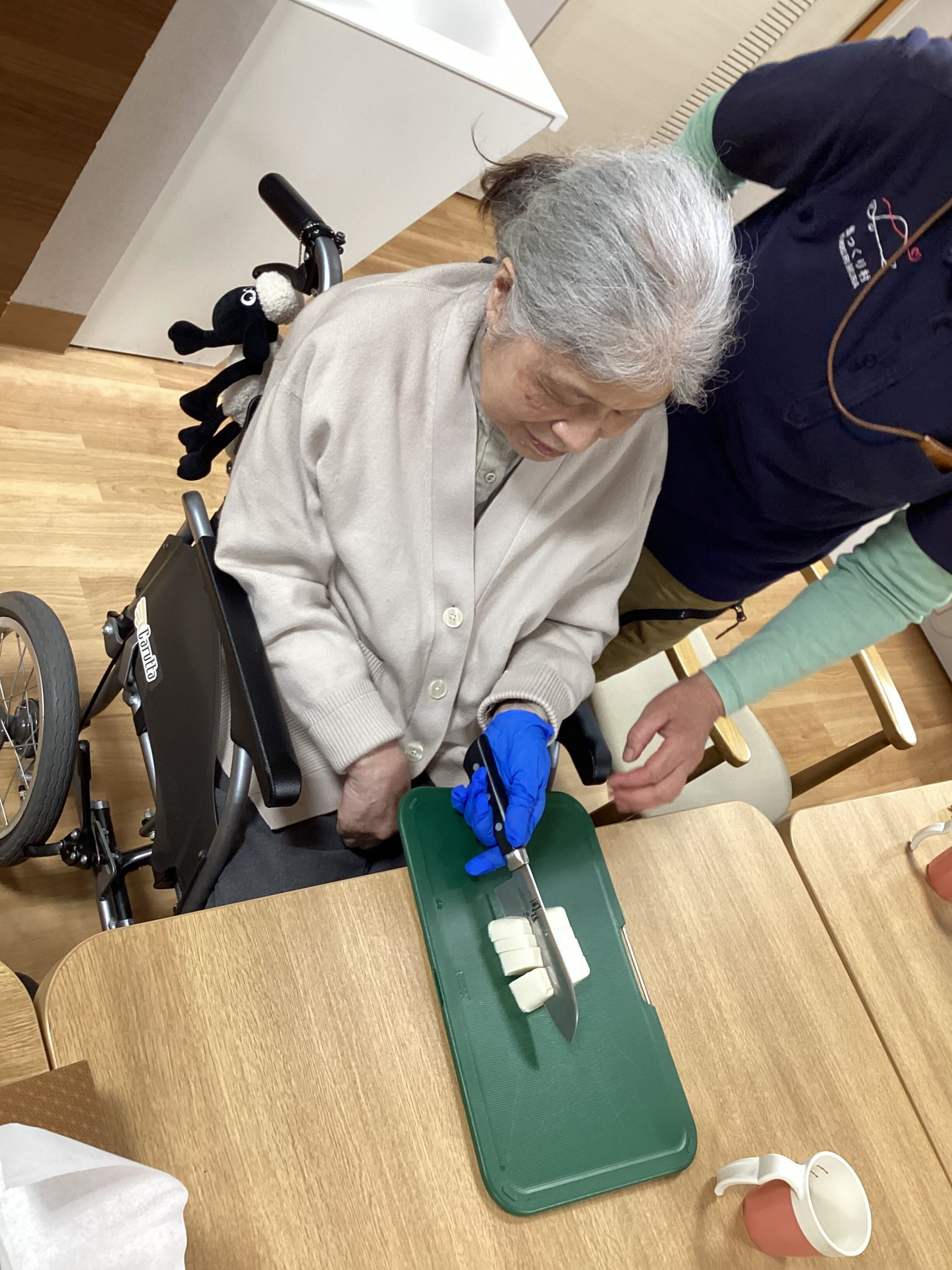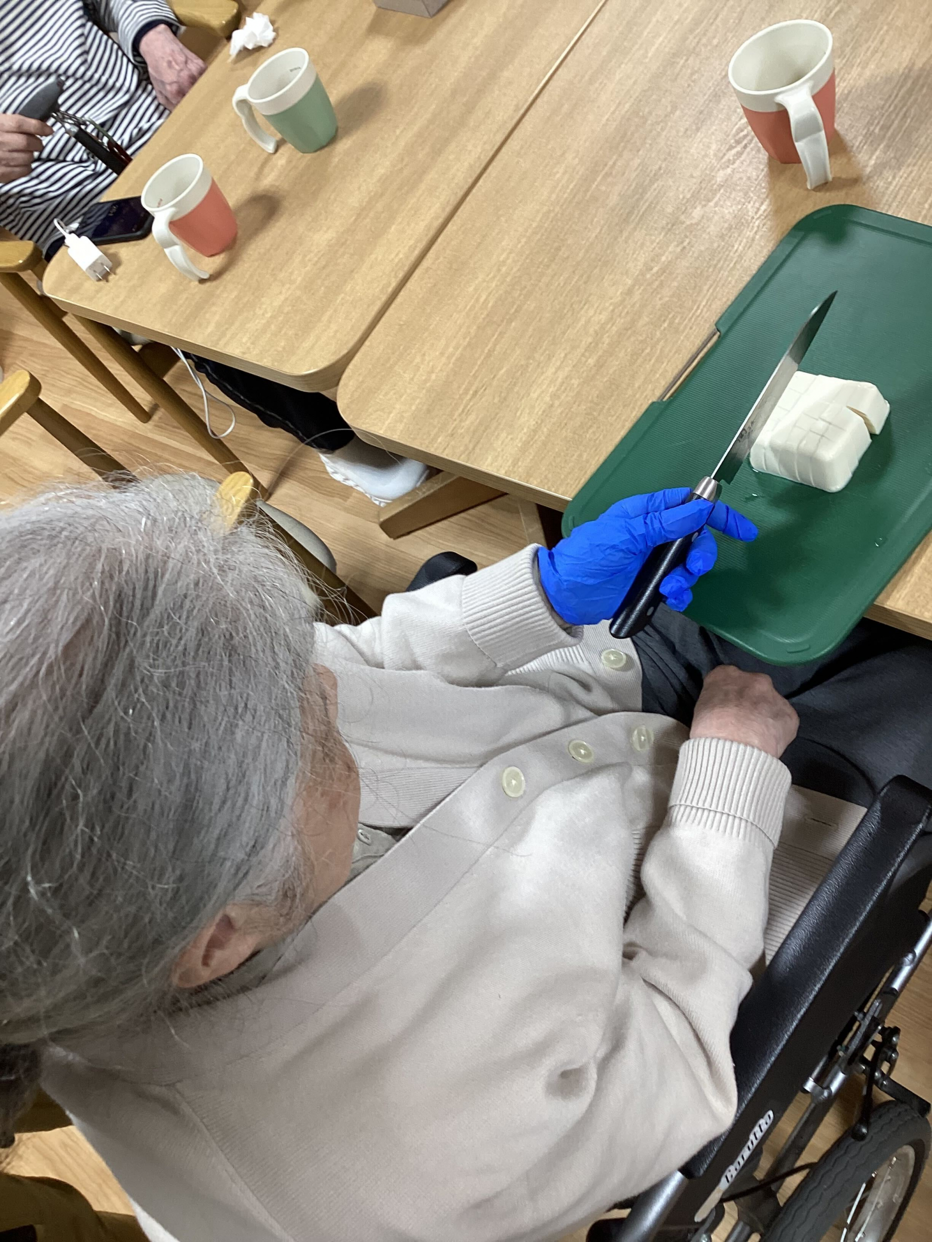 さっそくK様に豆腐を切っていただくことにしました(^O^)