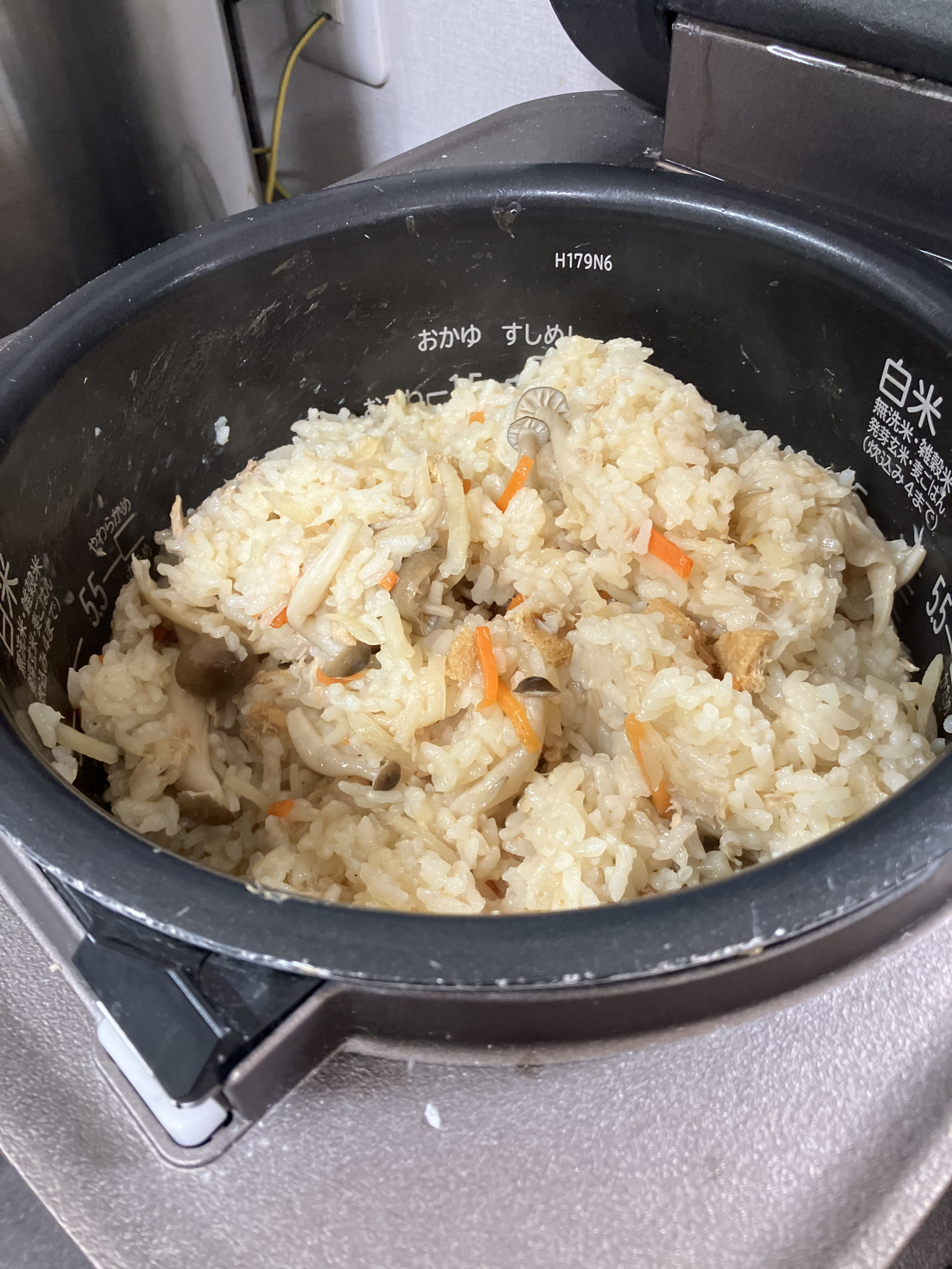 ダブルでお祝いしようと昼食には「かやくご飯」を作りました(^^♪