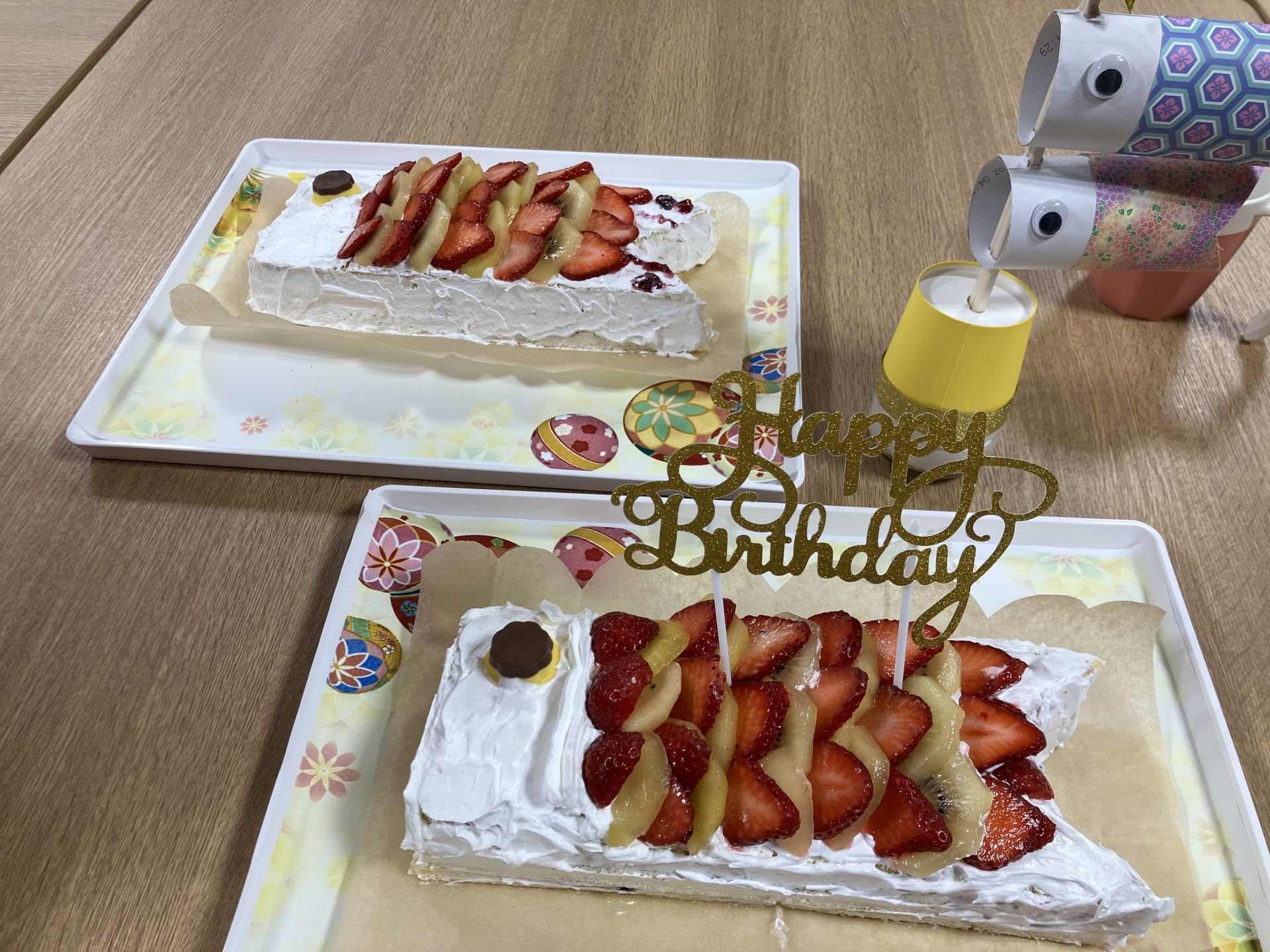 おやつの時間にはこいのぼりケーキを作ってM様のお誕生日をお祝いです(^O^)