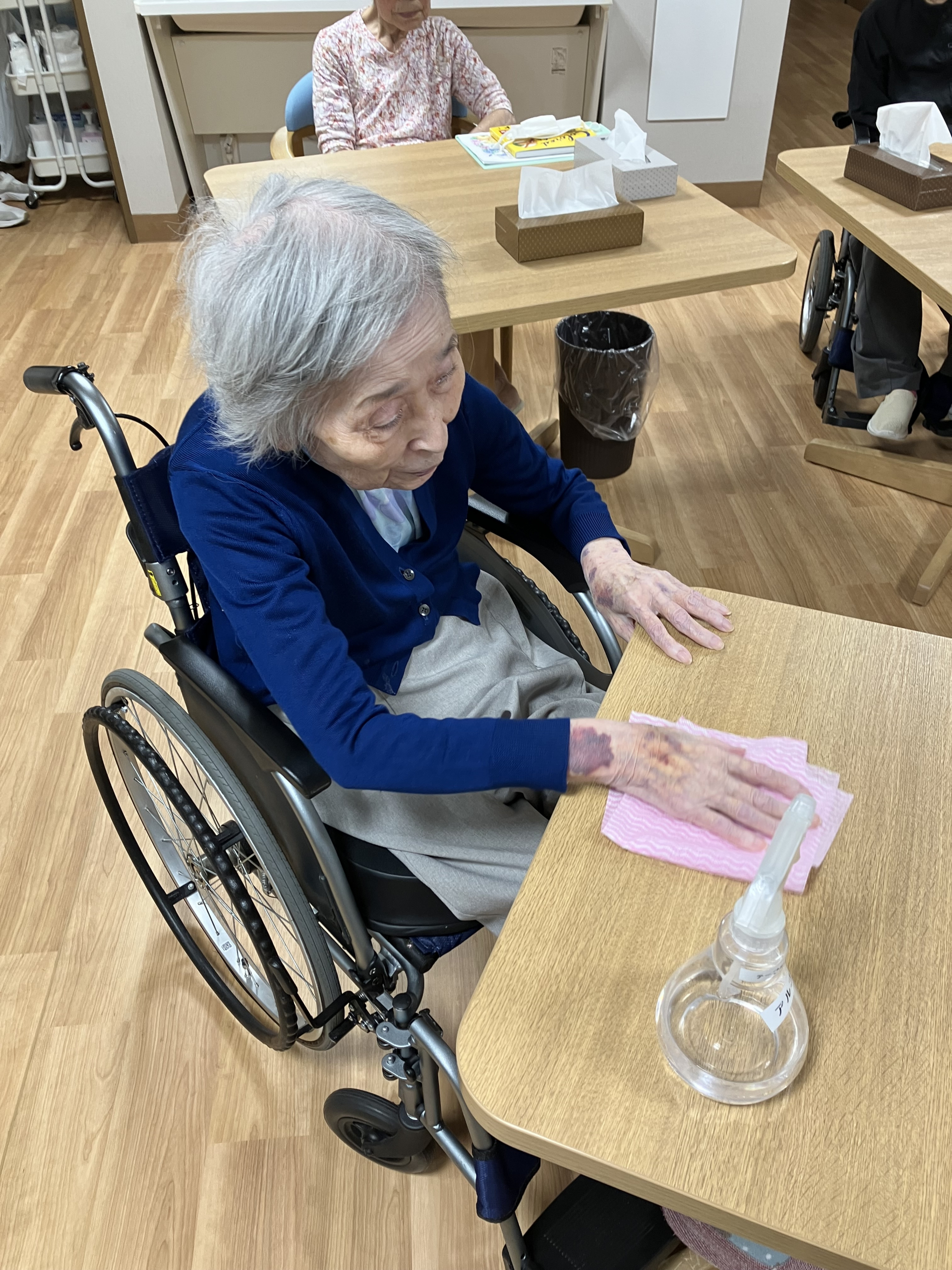 テーブルをアルコールで拭いていただき、お召し上がりください!!