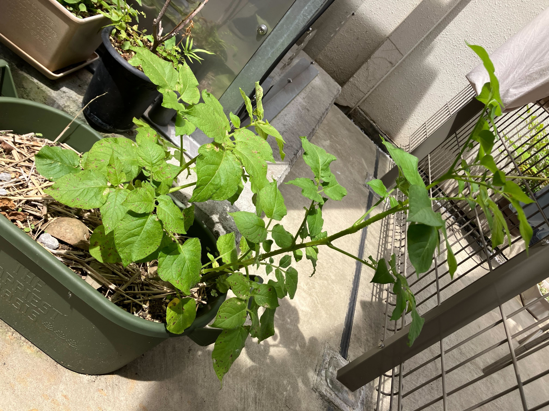 冷蔵庫で芽が出てしまったジャガイモを数週間前に植えたのですが・・・