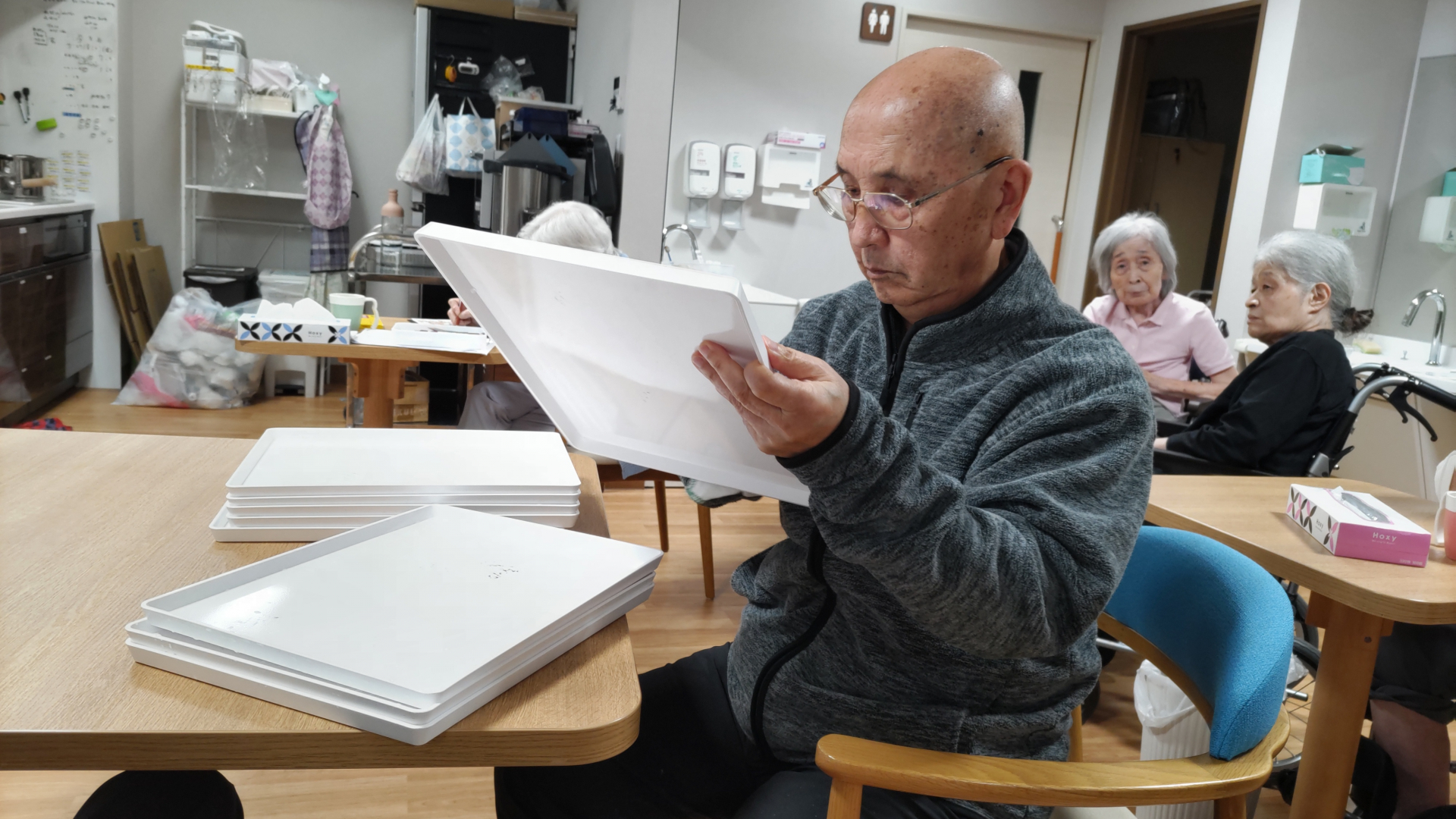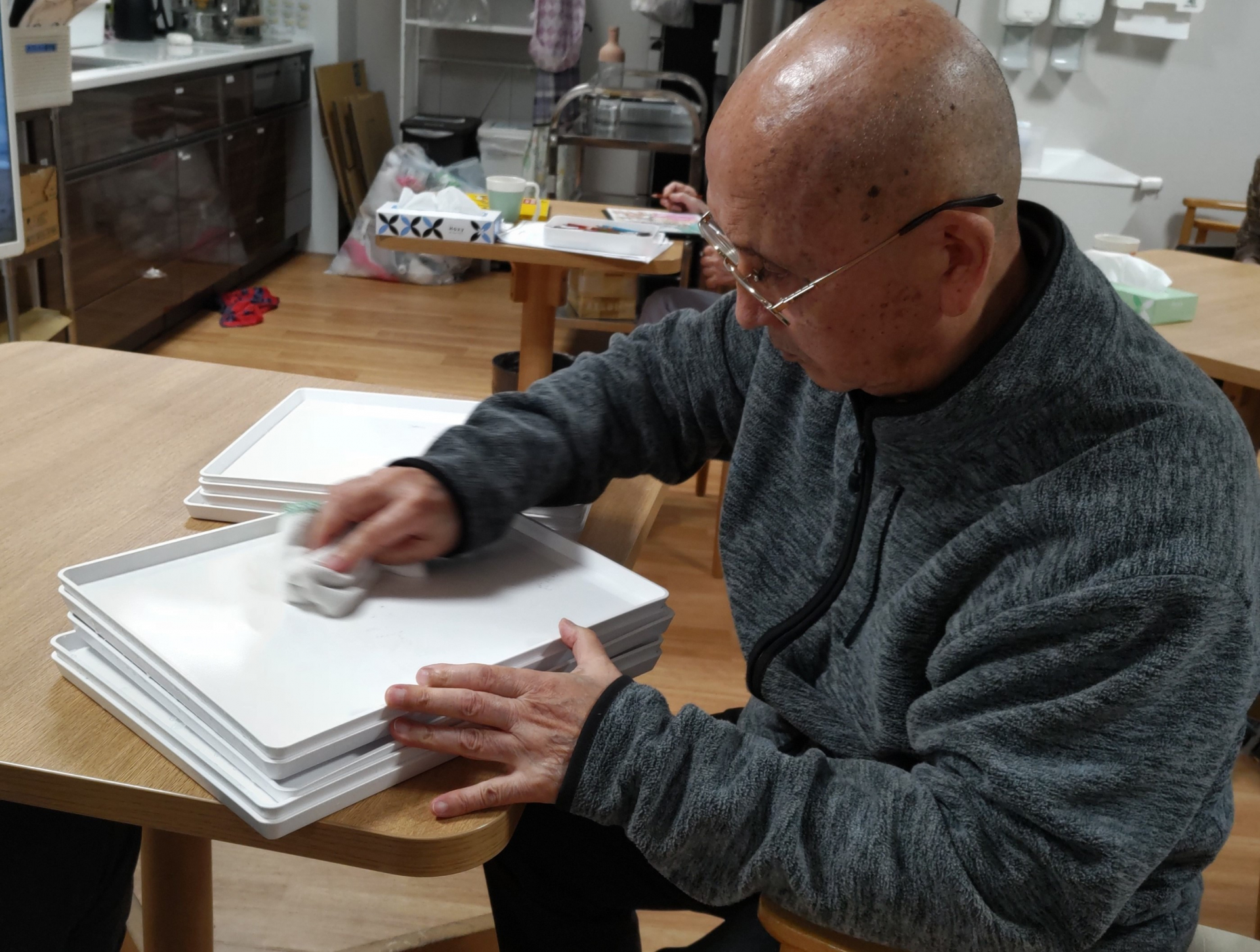 食事の時に使ったトレーを拭いてくださるのはM様です(^O^)