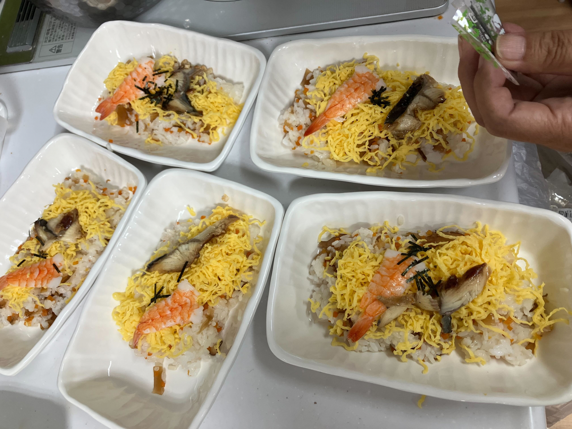 昼食は小さなウナギが入ったちらし寿司を提供しました(^O^)