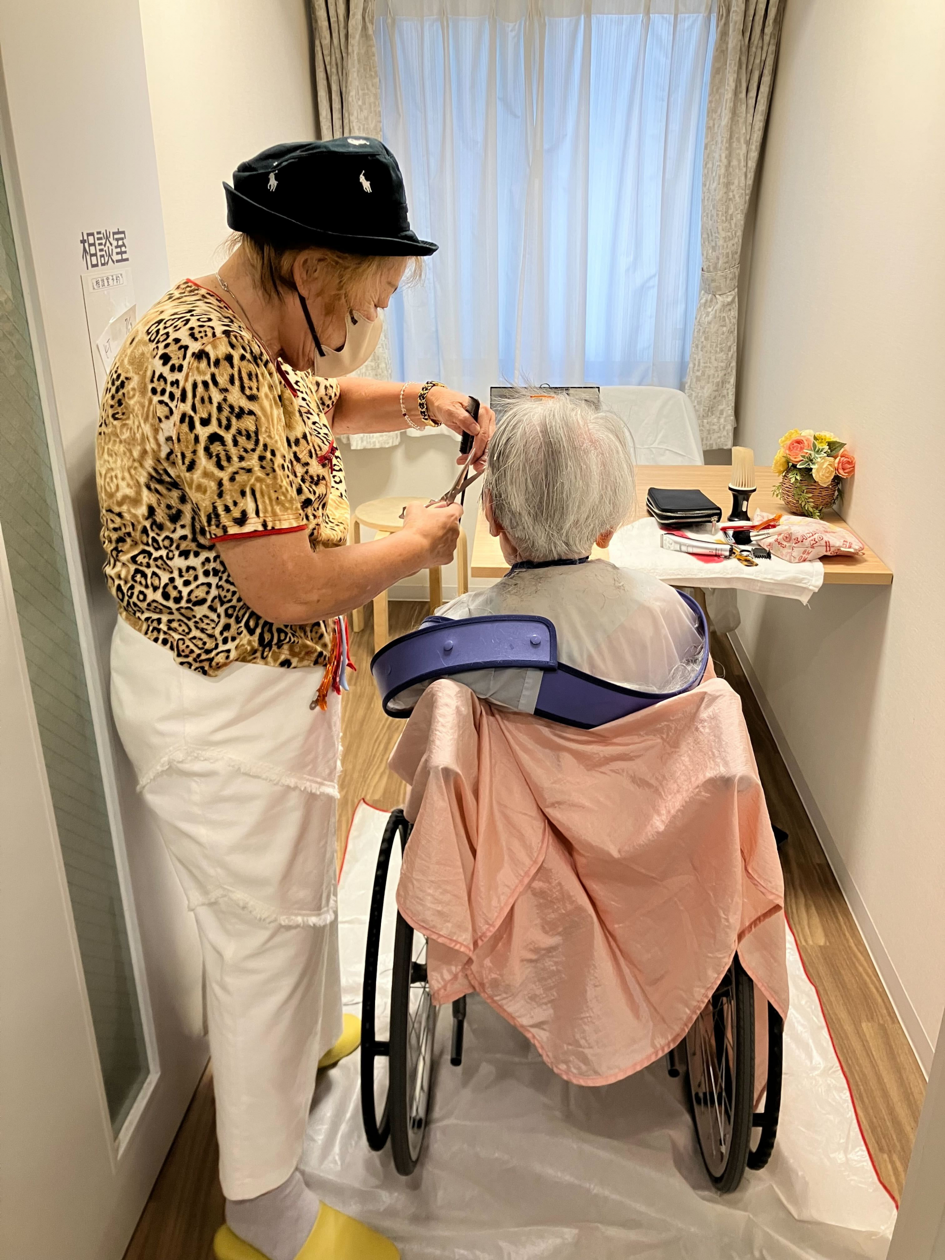 訪問理美容の美容師さんに髪を切ってもらっているのはS様です(^O^)