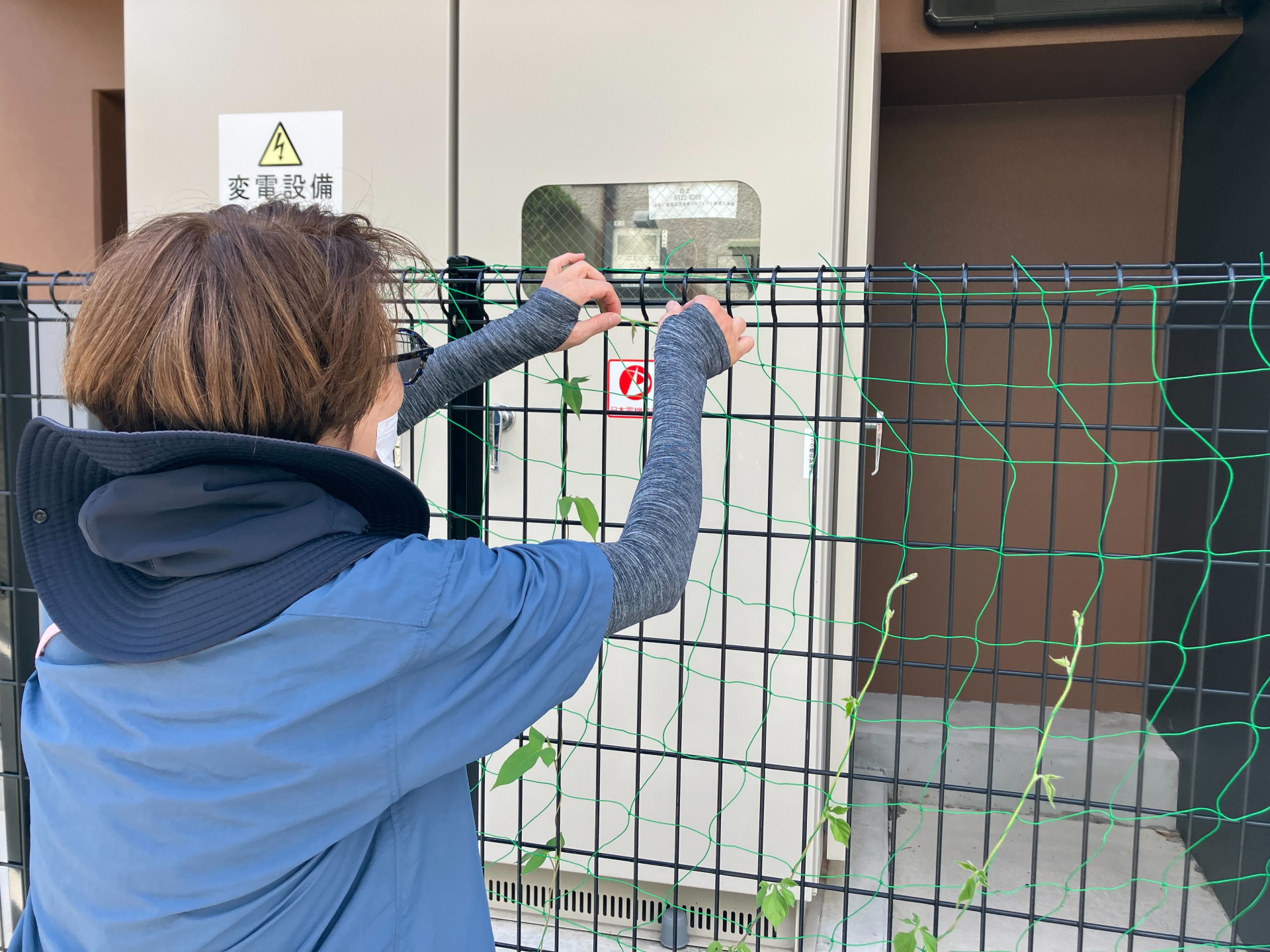 ガーデニング部野口部長がつるの方向修正(^O^)(^O^)