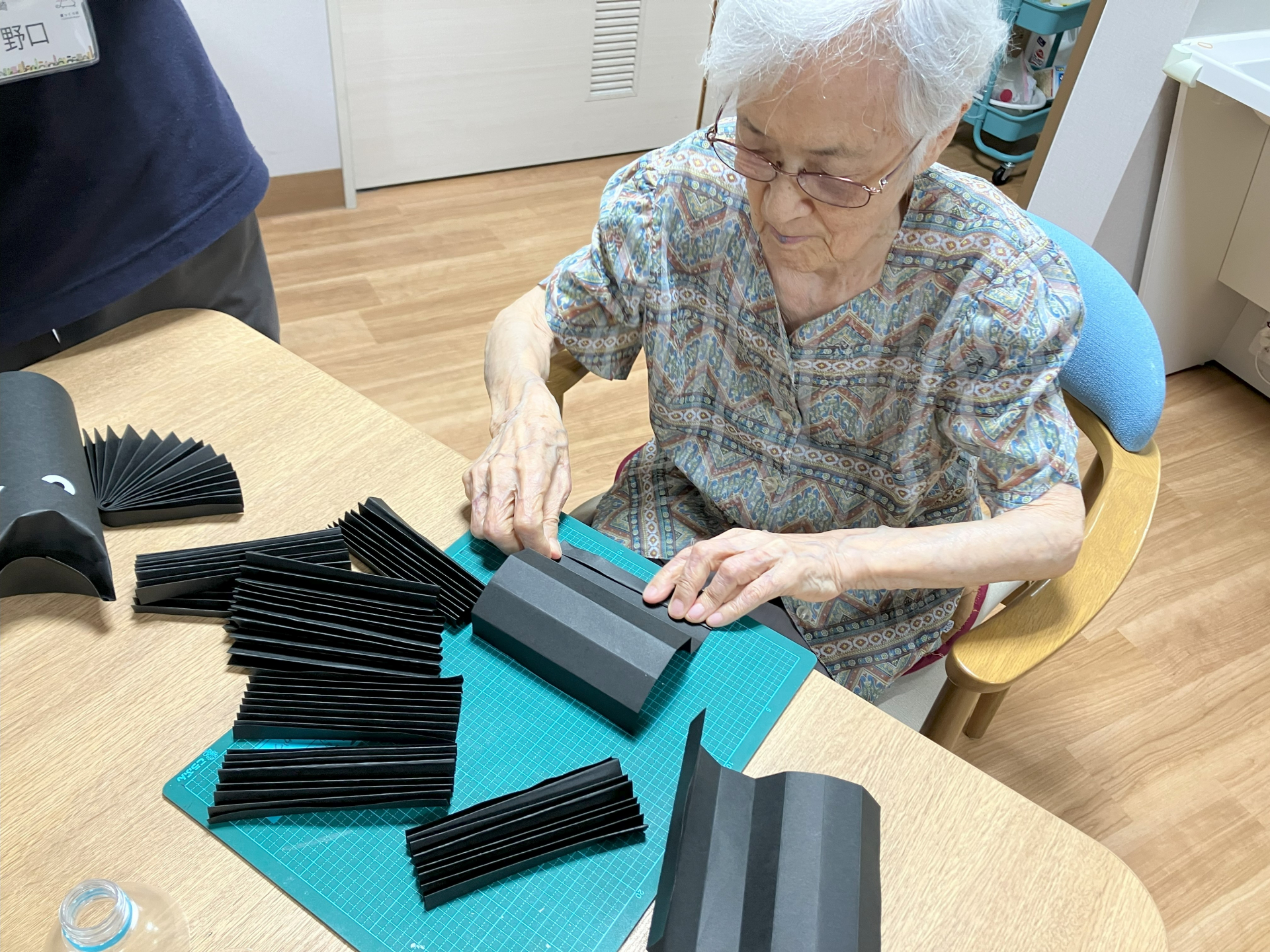 こちらでは黒い画用紙を蛇腹に折っています(^^)v