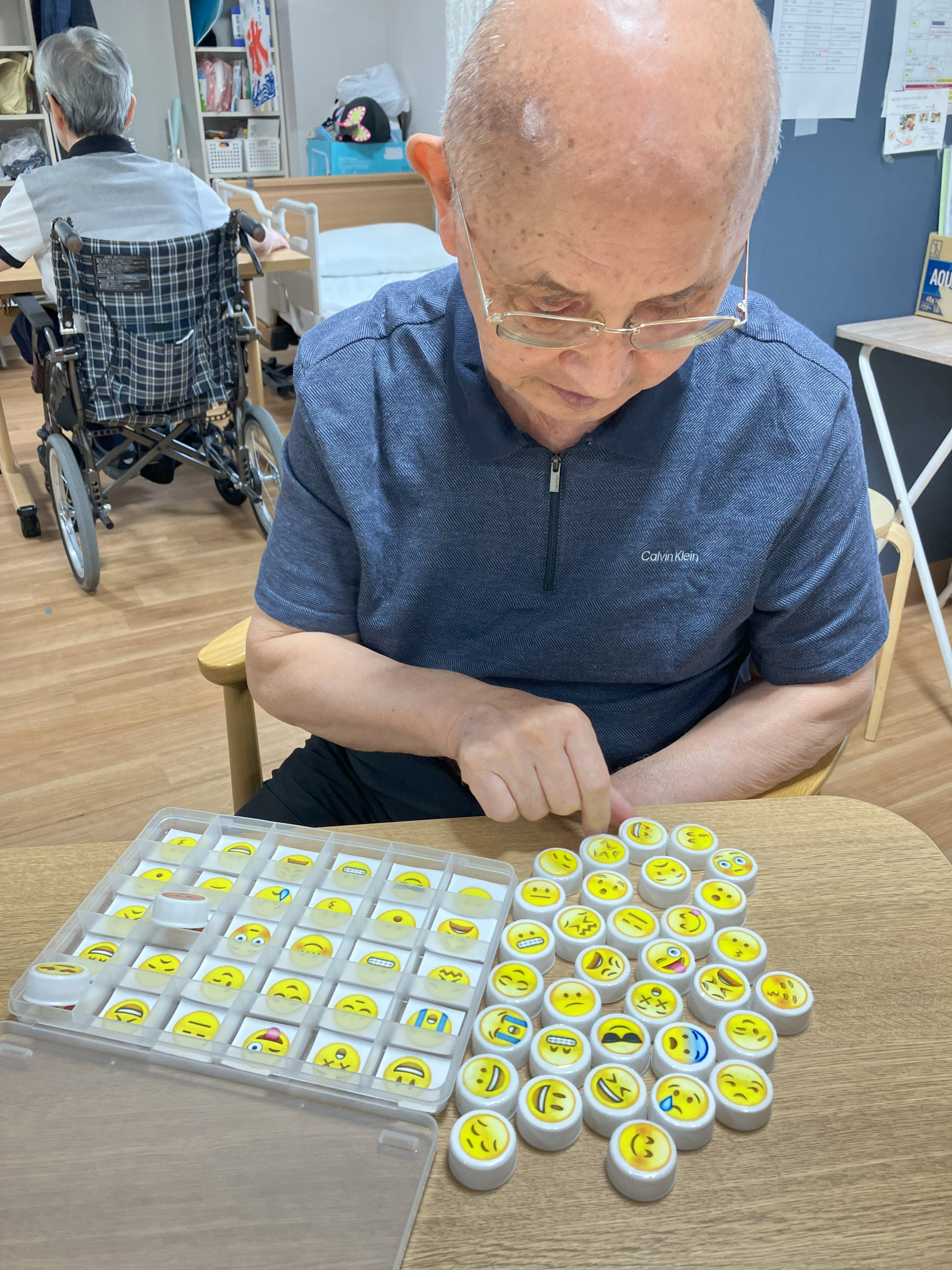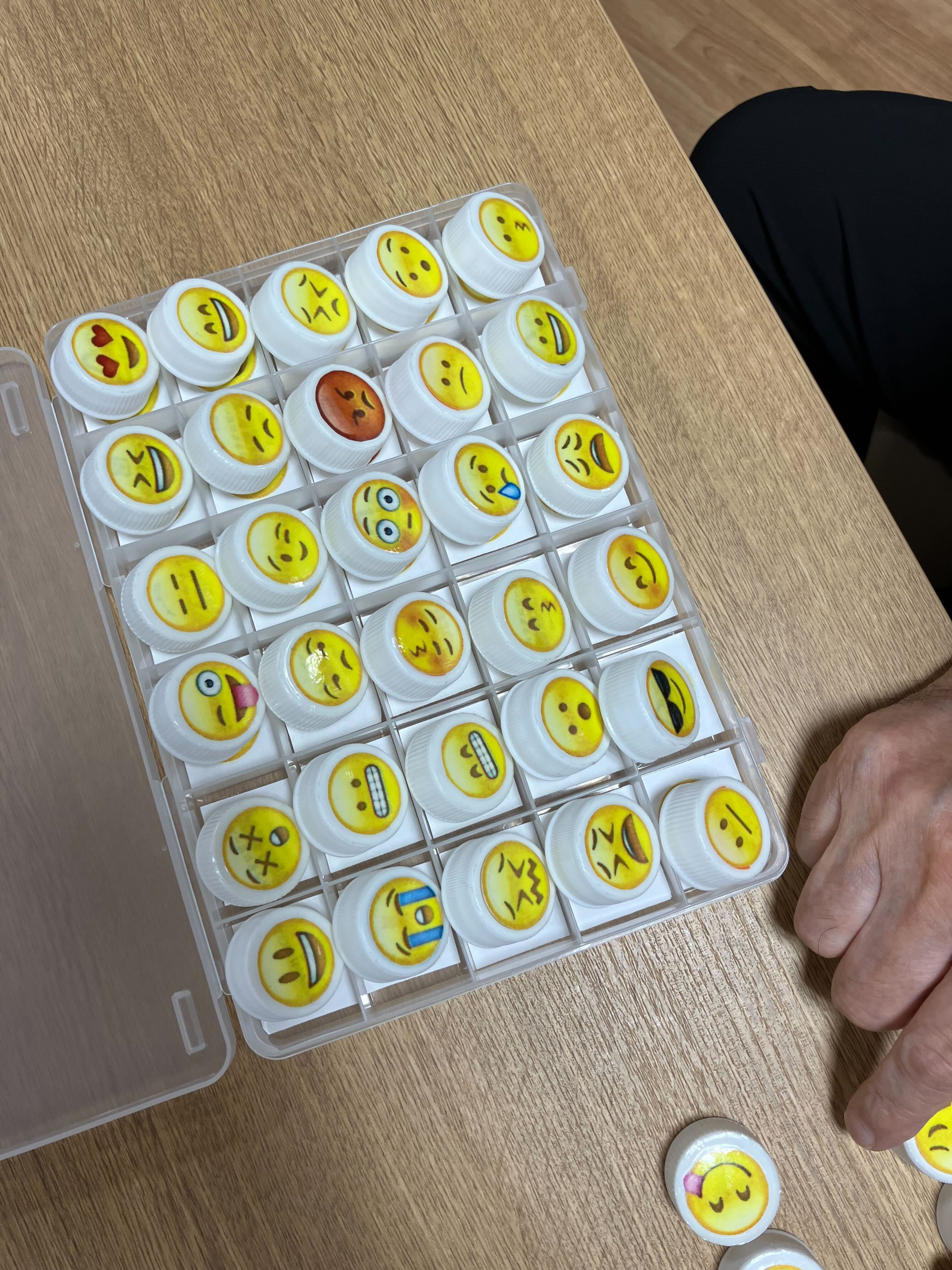 ケースの中に顔が貼ってあって、その表情と同じキャップを置いていきます(^^♪