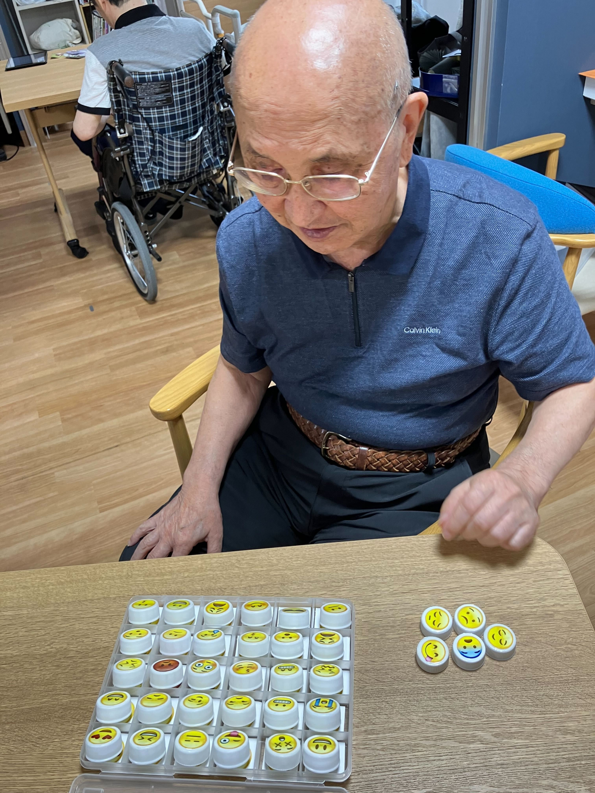 ケースの中に顔が貼ってあって、その表情と同じキャップを置いていきます(^^♪