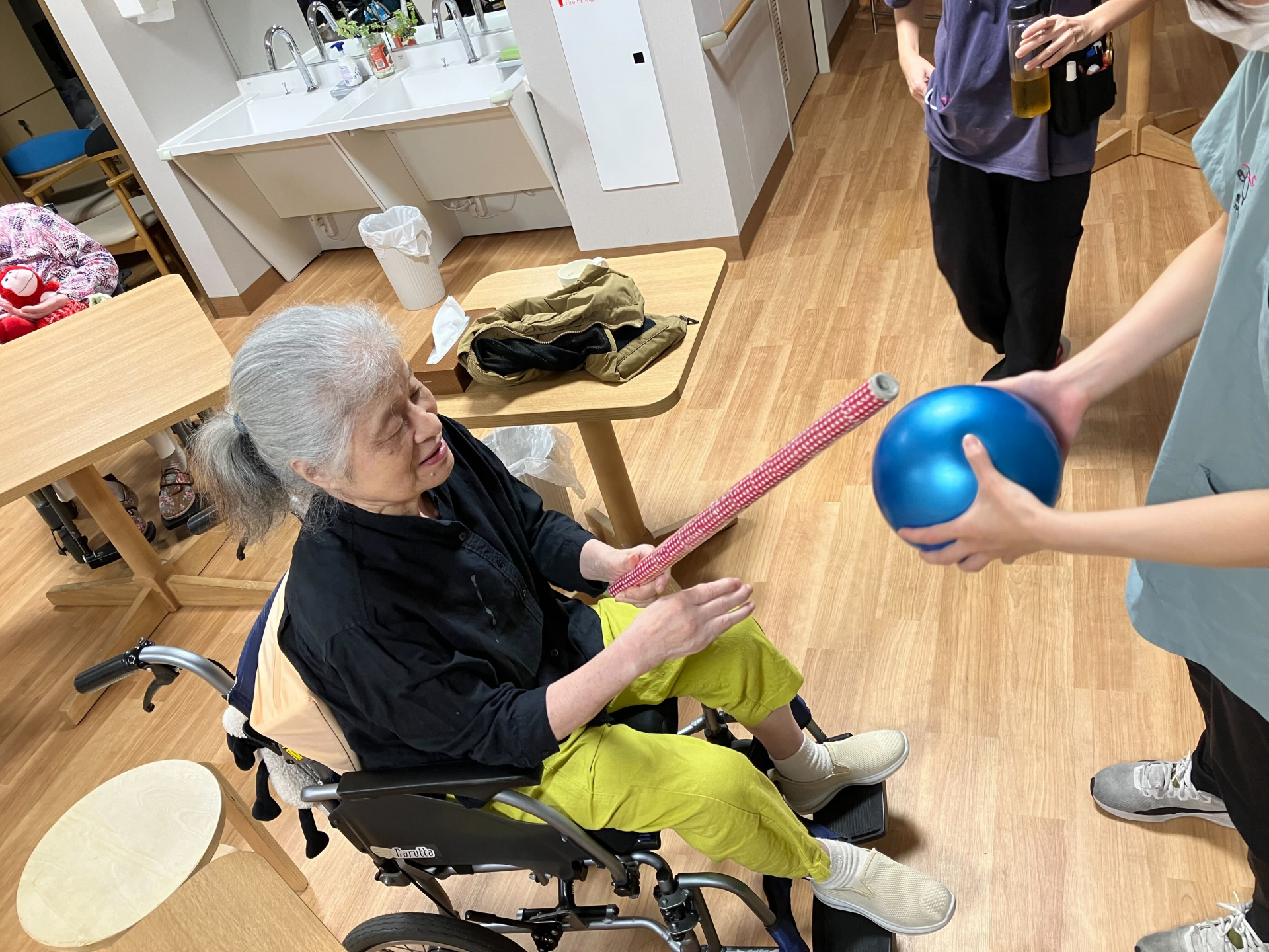 K様は棒を使って、関節をのばしたり、的確にボールに棒が当たるよう訓練中(^^♪