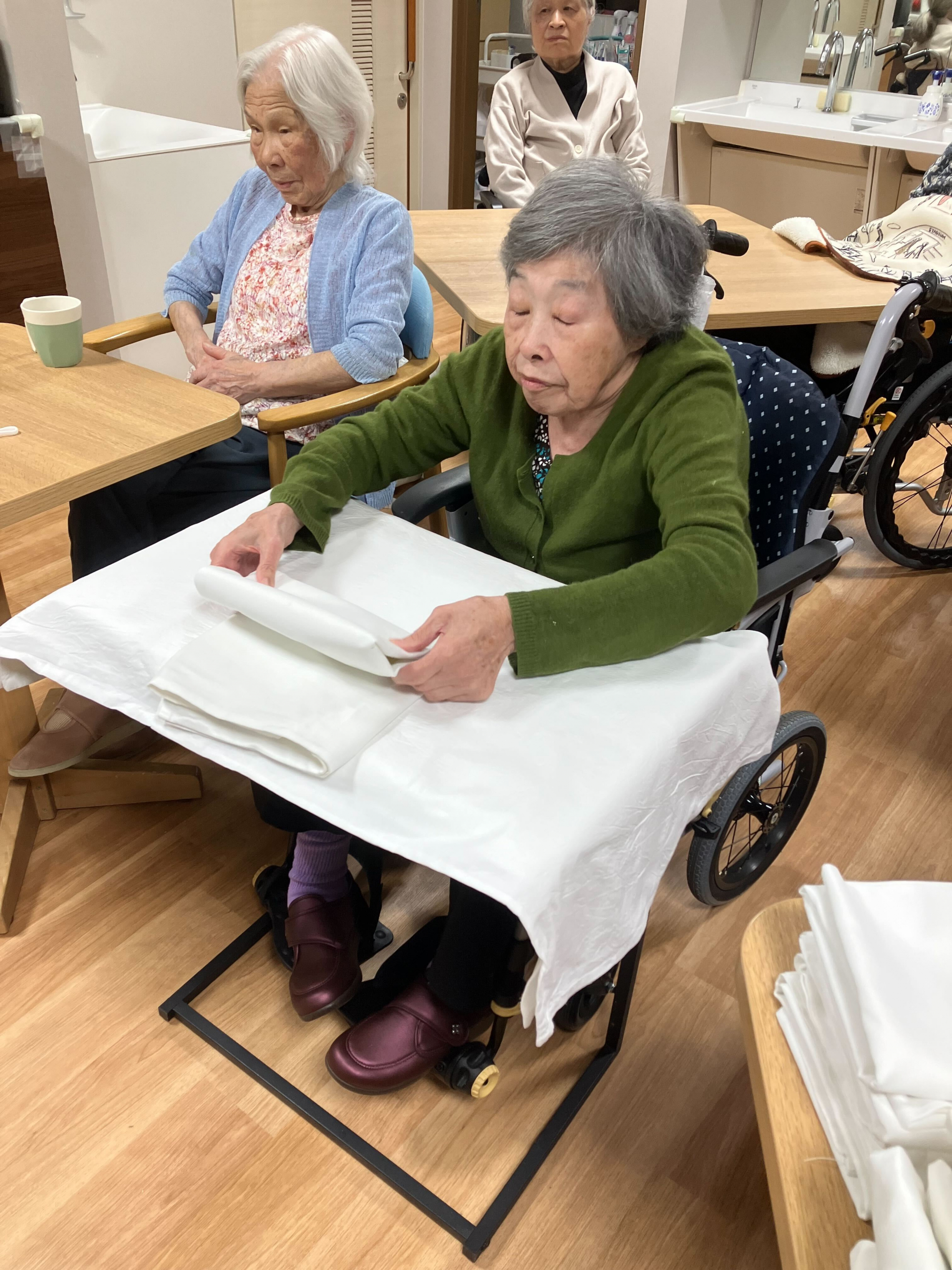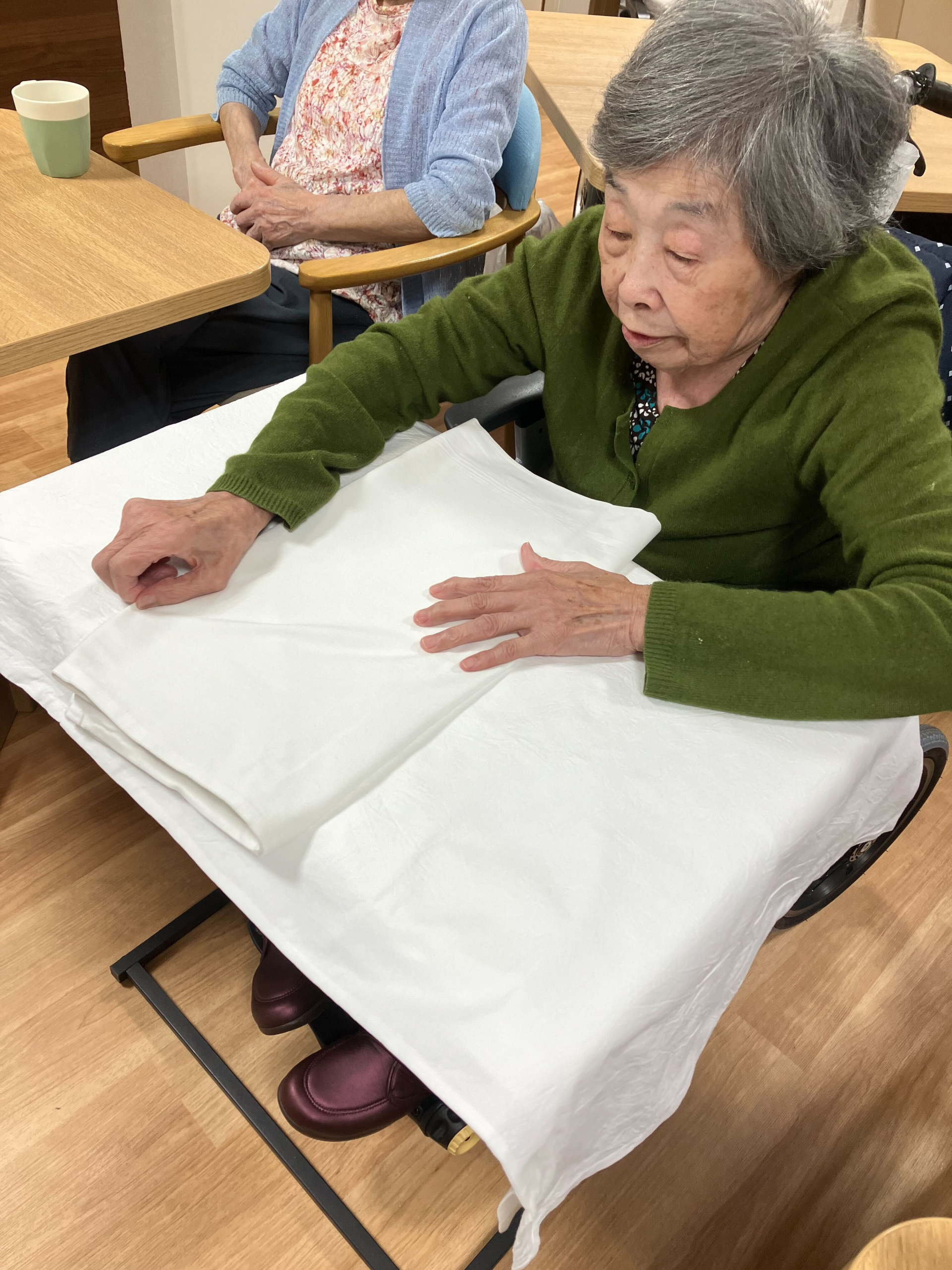 A様がバスタオルをたたんでくださっています(^^)v