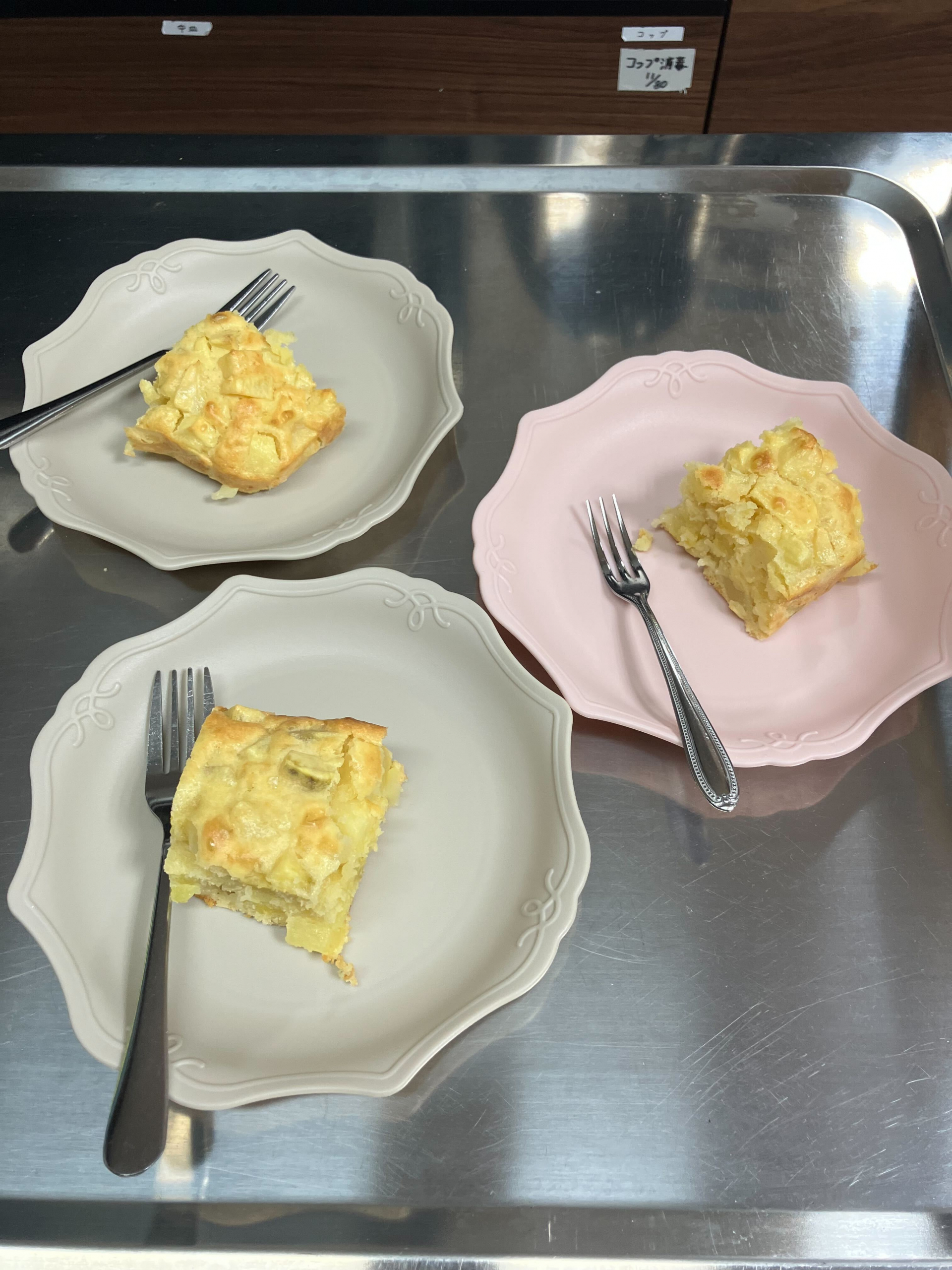 今日はジュニ職員がリンゴとさつまいものケーキを作ってくれています(^^♪
