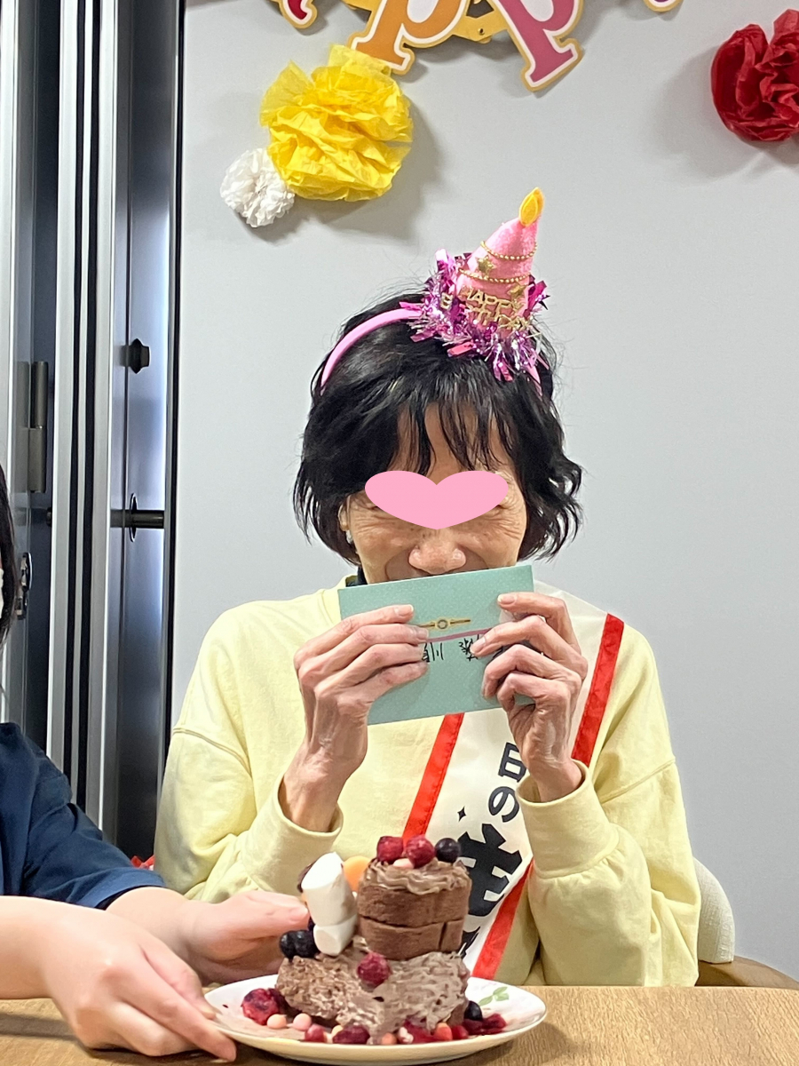 職員の手作りケーキとカードをお渡ししてお祝いしました(^^♪