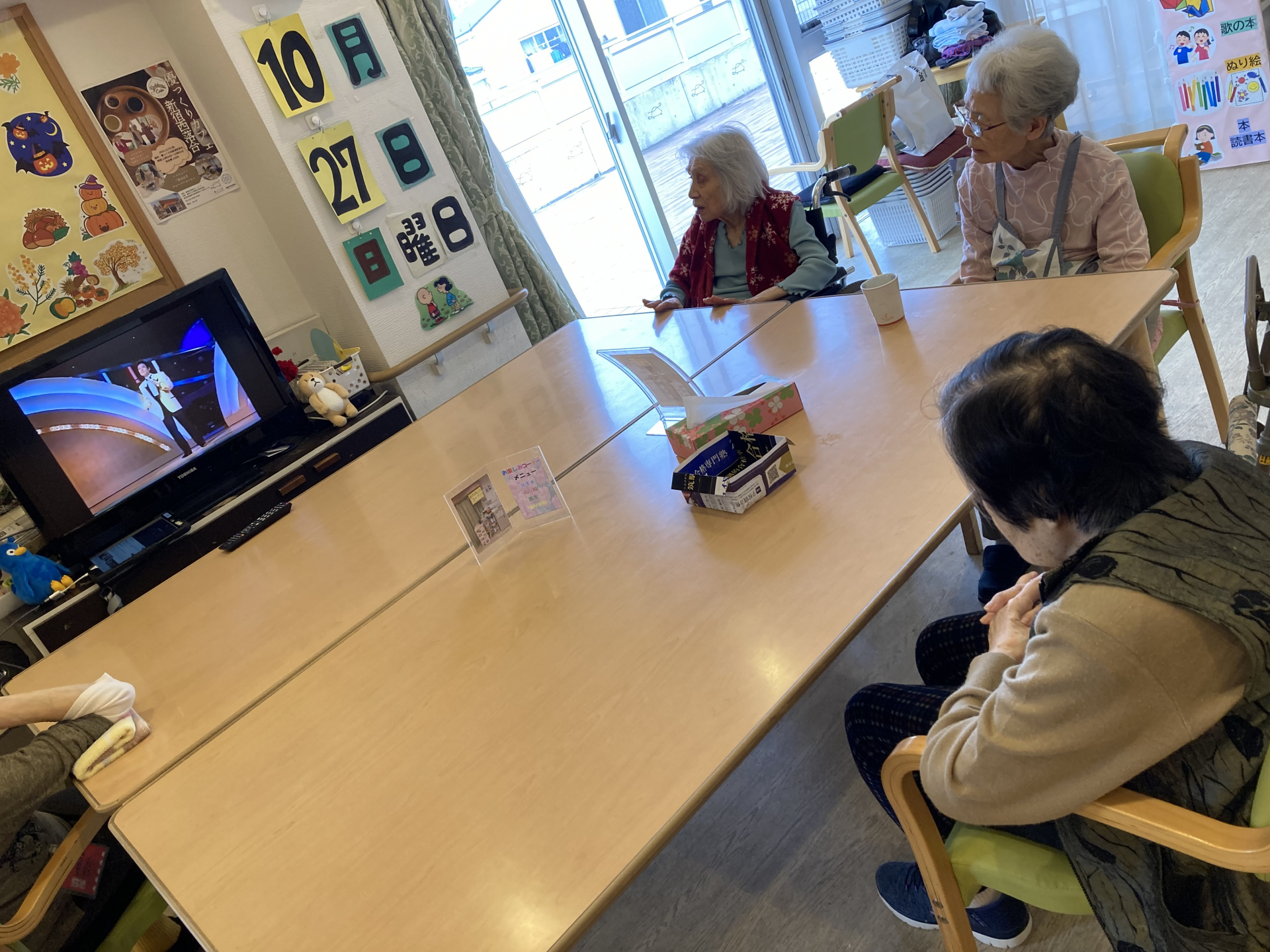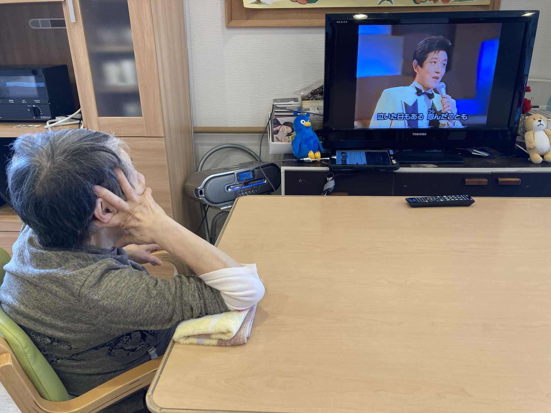 午前のお茶の時間のあとの隙間時間に、皆様のご要望で歌をテレビに映しだし