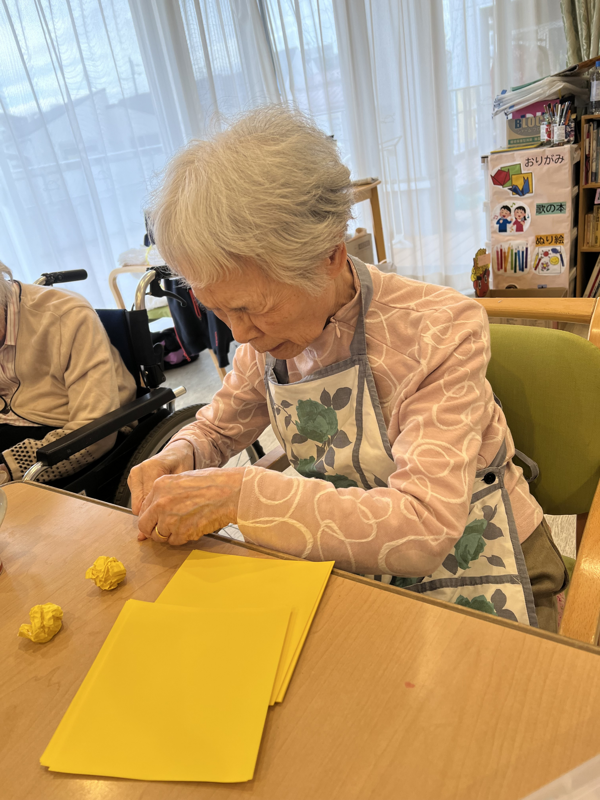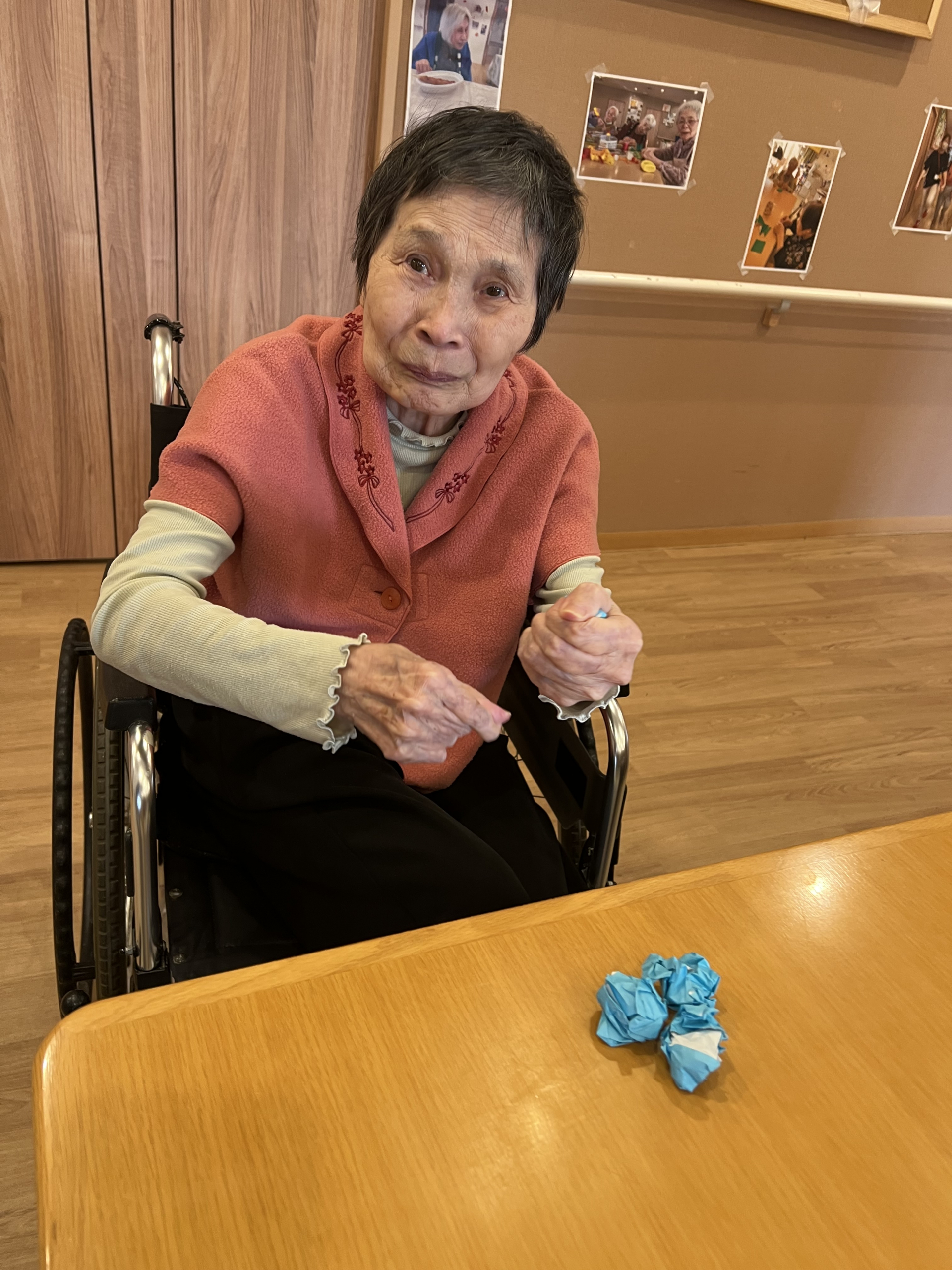 もうすぐ節分ということで、節分の豆にみたてた玉を折り紙で作って頂きました^^