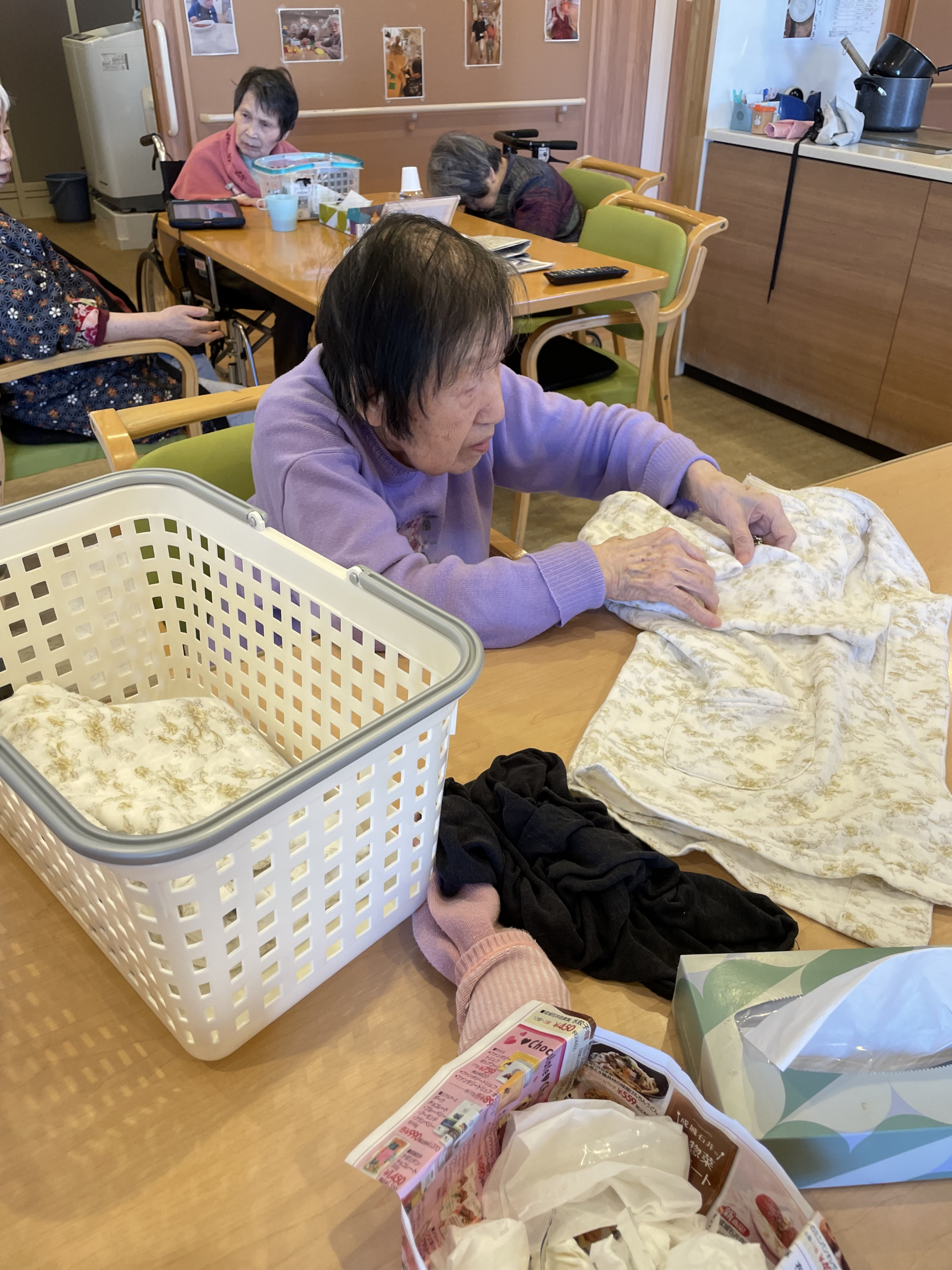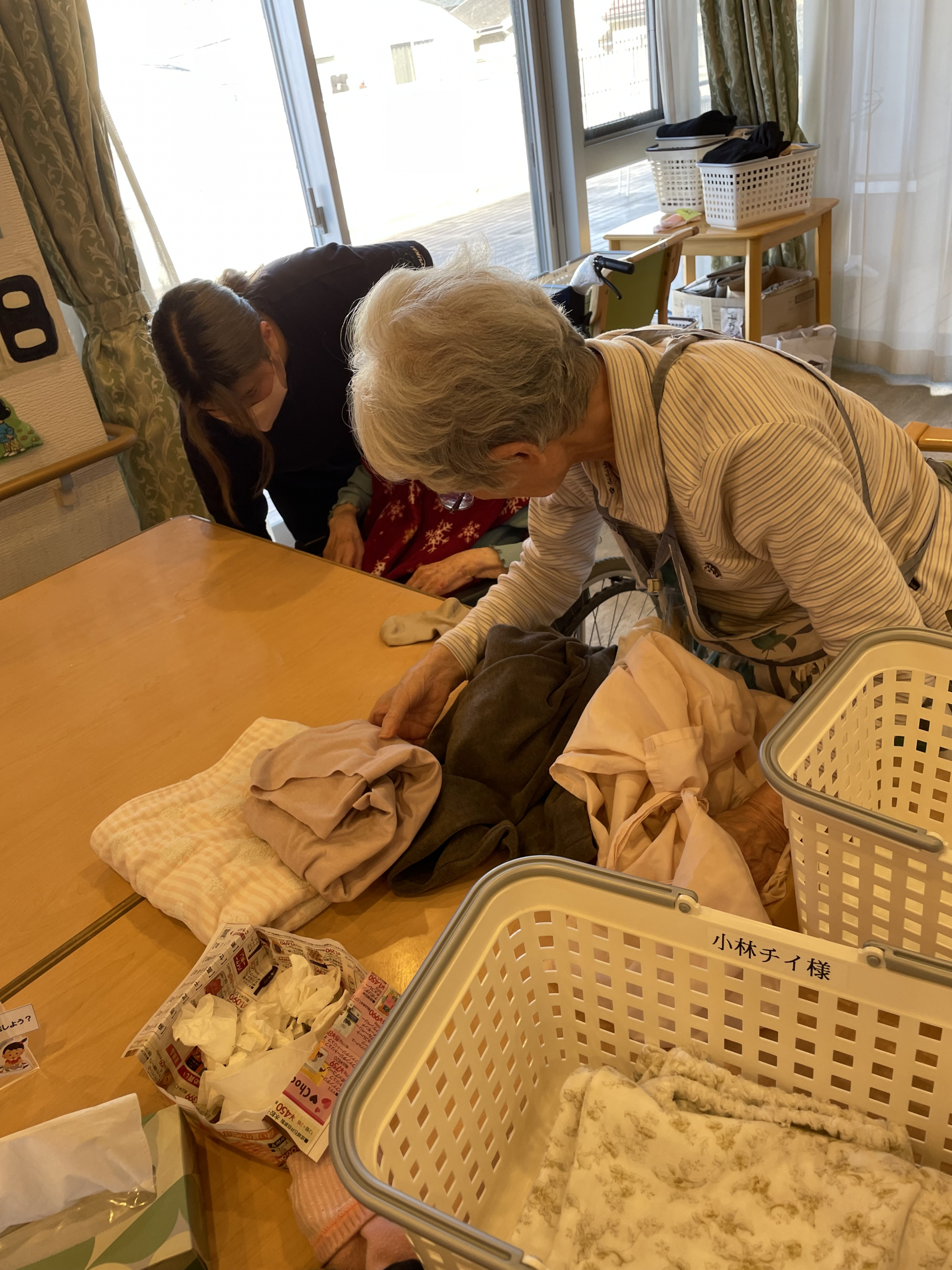 お洗濯物の仕分けをしていただいています