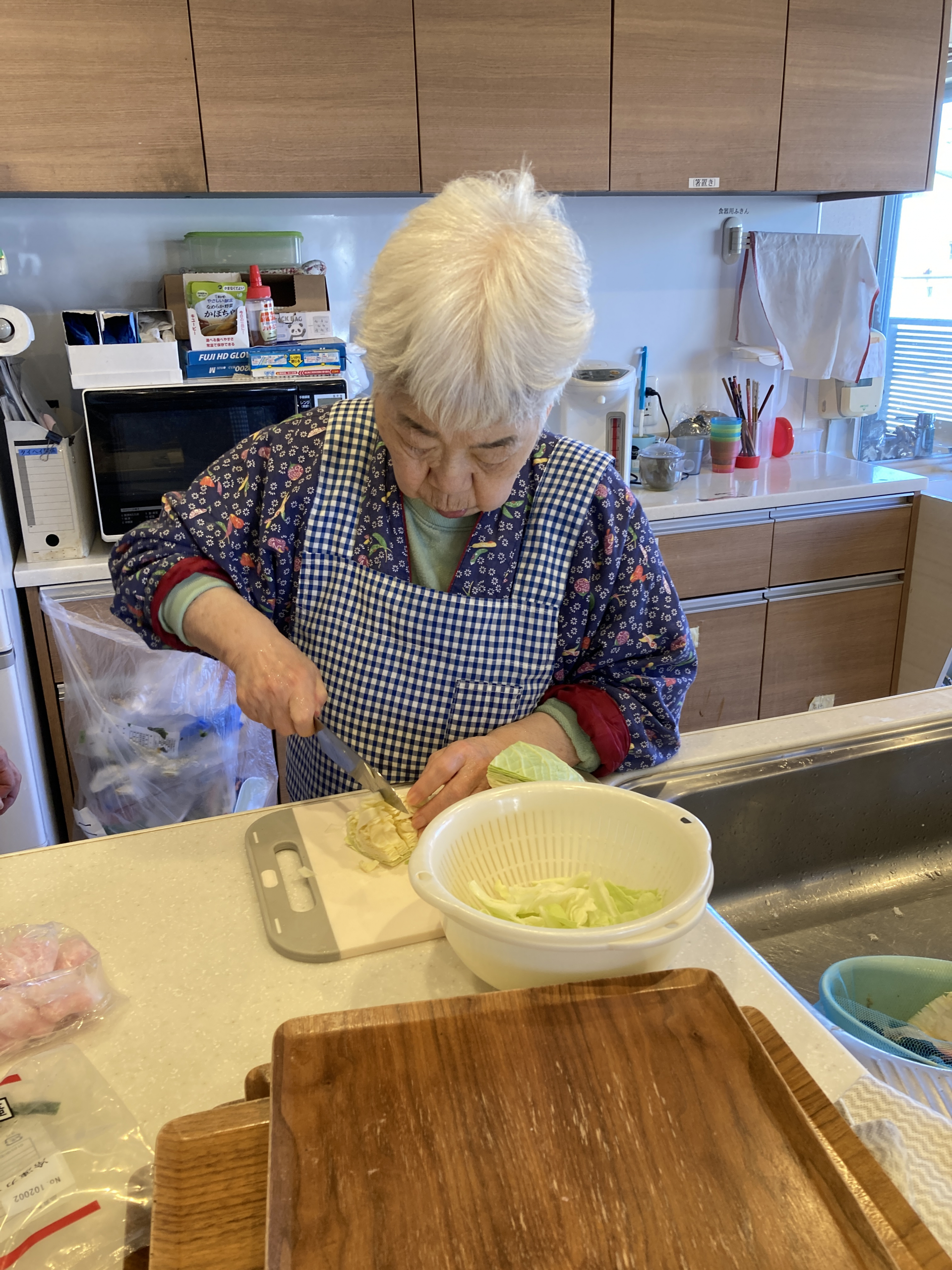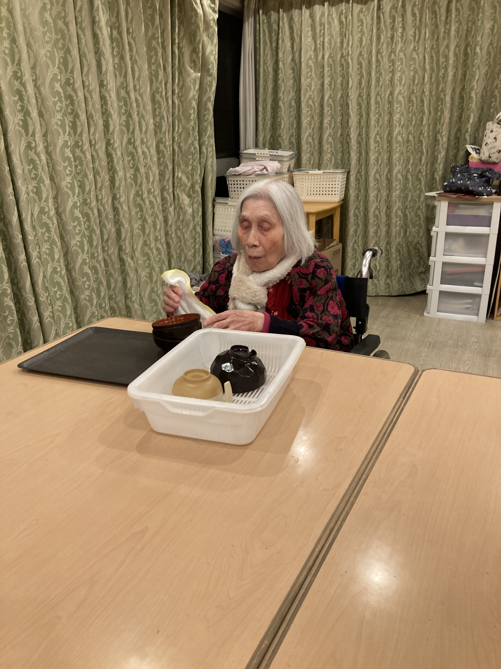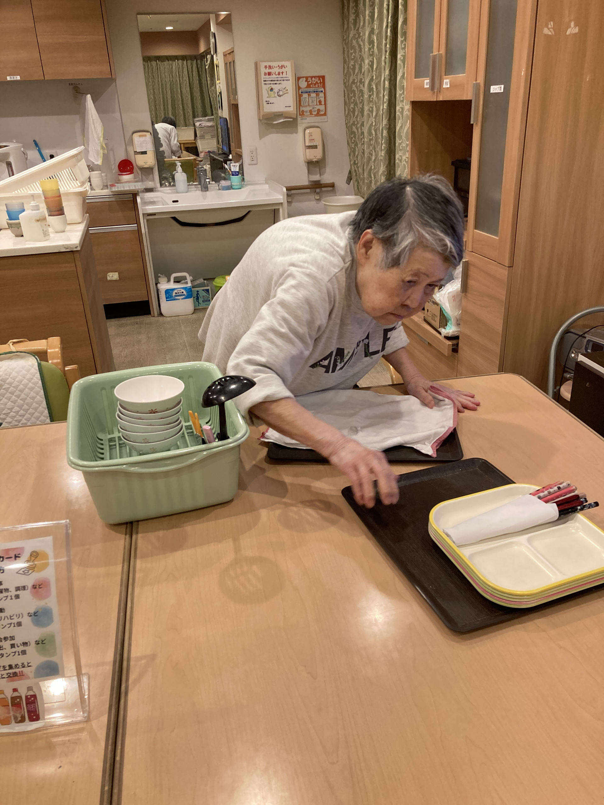 職員が食器を洗っているとK様が「その食器拭くよ」と言っていただき、またY様も「まだあるならこっちにも持ってきて」と家事を進んでやってくれました。