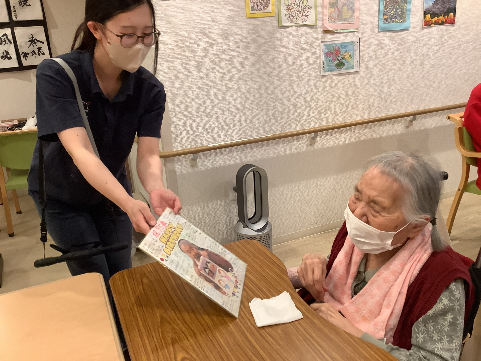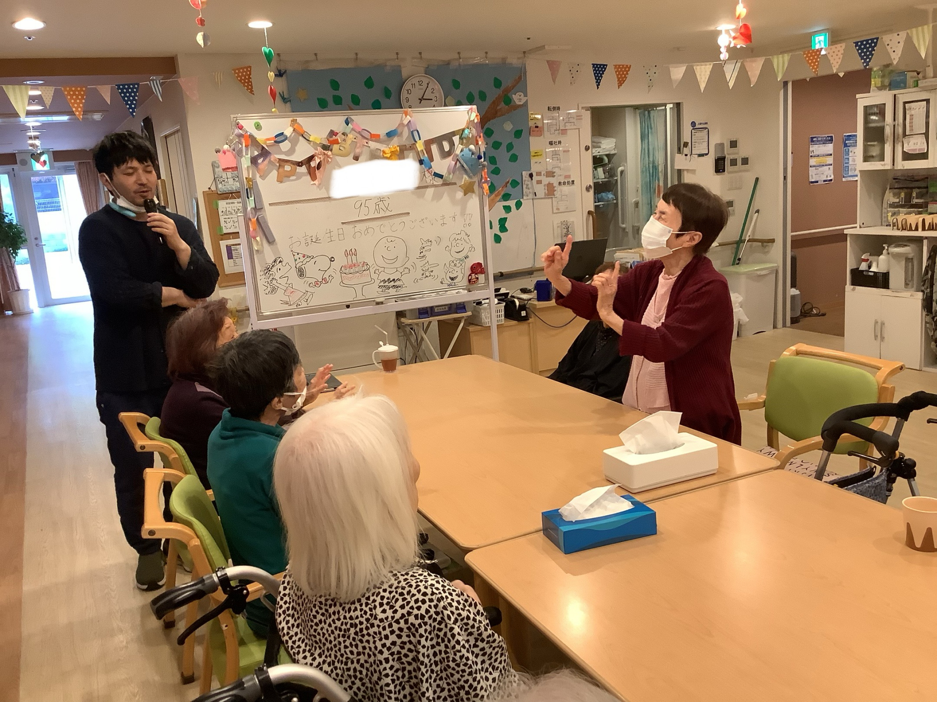主役の利用者様には、職員一同によるお祝いメッセージの