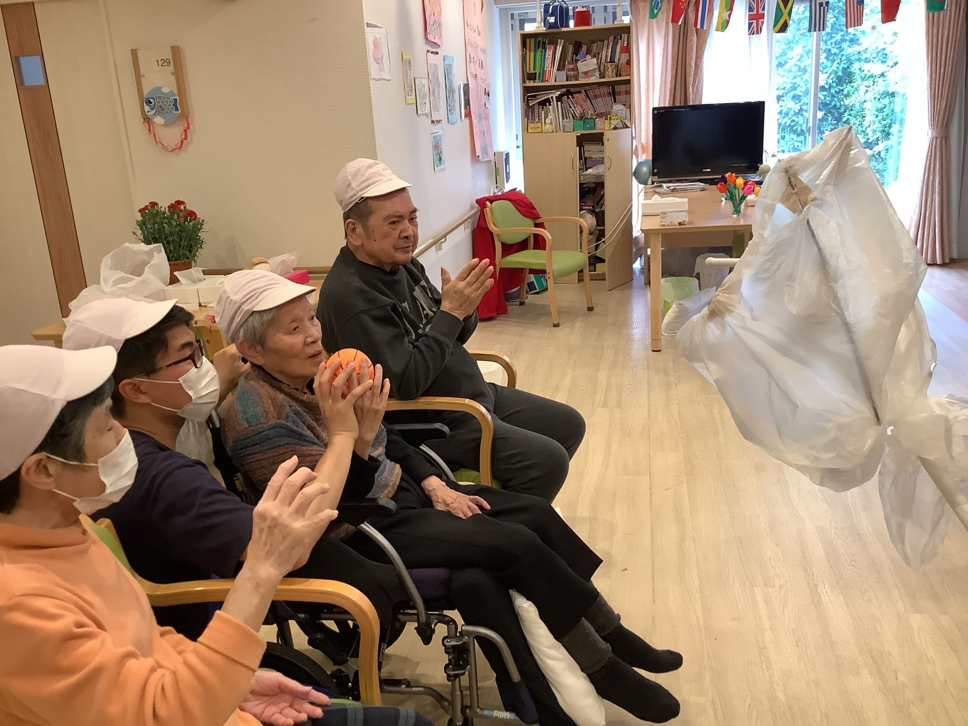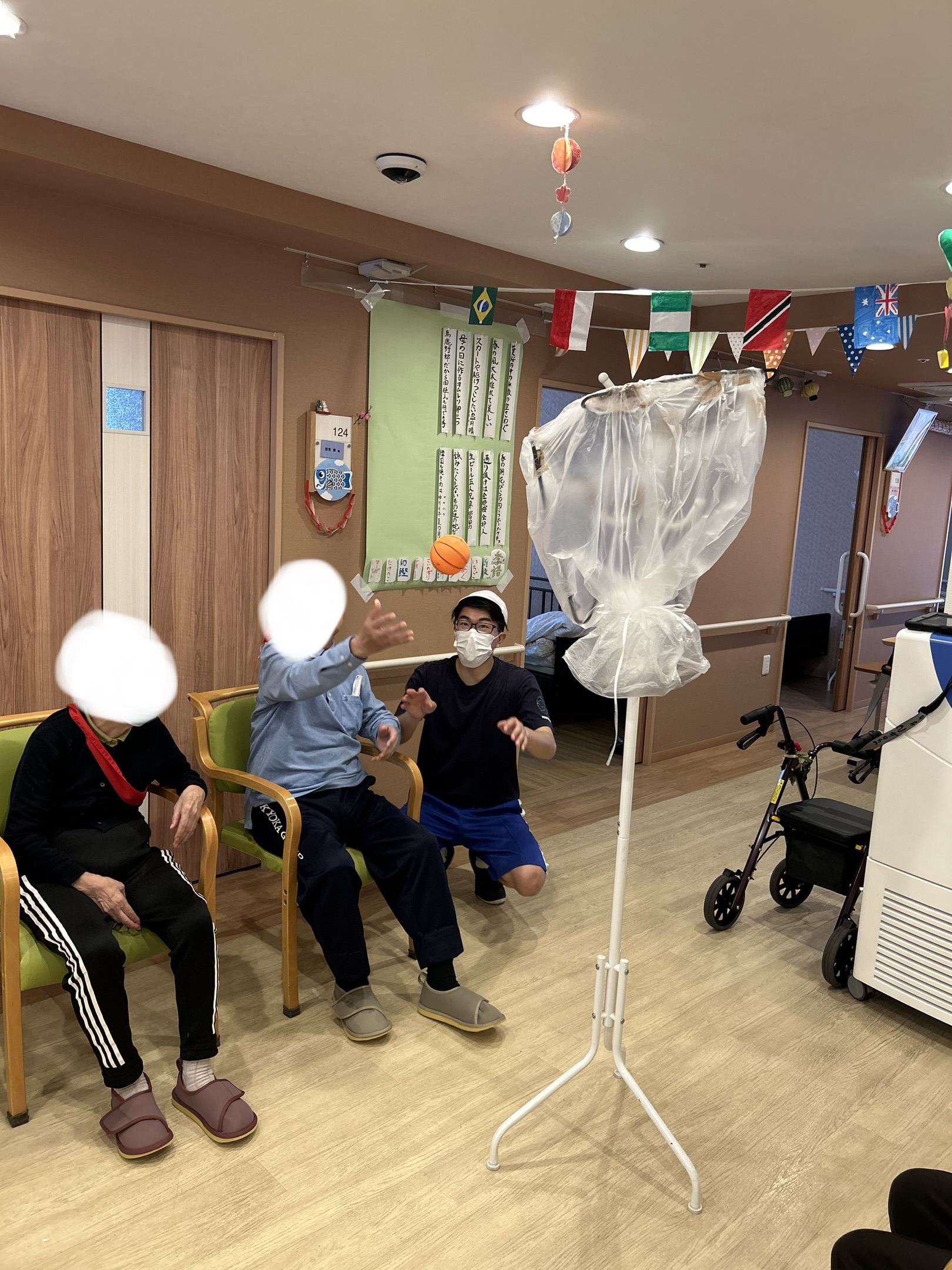 高いカゴに投げ入れる、なかなか難しい競技でした!