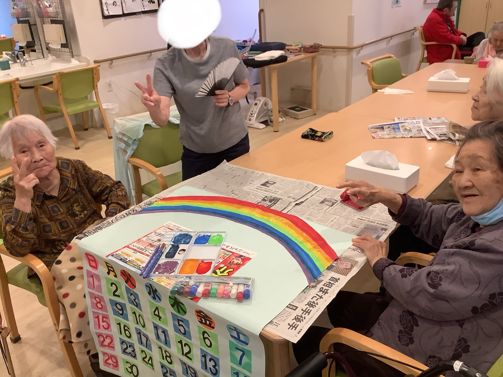 2025.05.31 活動報告 六月のカレンダー作り! Tweet シェアする こんにちは! 優っくり村新宿西落合小規模多機能介護の介護職員の小西です! 六月のカレンダーを作っています! 鮮やかな虹!綺麗ですね! お見事です!出来上がりが楽しみですね(^ ^) #優っくり村小規模多機能介護新宿西落合 #レクリエーション #カレンダー作り #工作 #絵の具 前の記事 2025.06.07 活動報告 月に一度の書道の会! 次の記事 2025.05.31 活動報告 お豆腐パンケーキできました! 一覧へ戻る