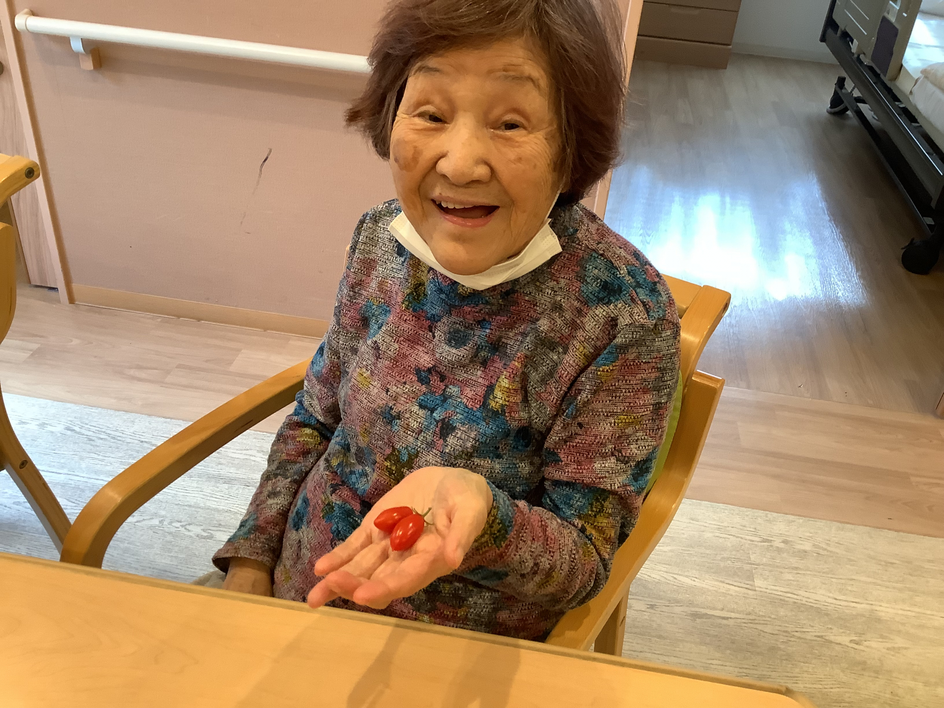 真っ赤なトマトが取れて、にっこり笑顔(^ ^)