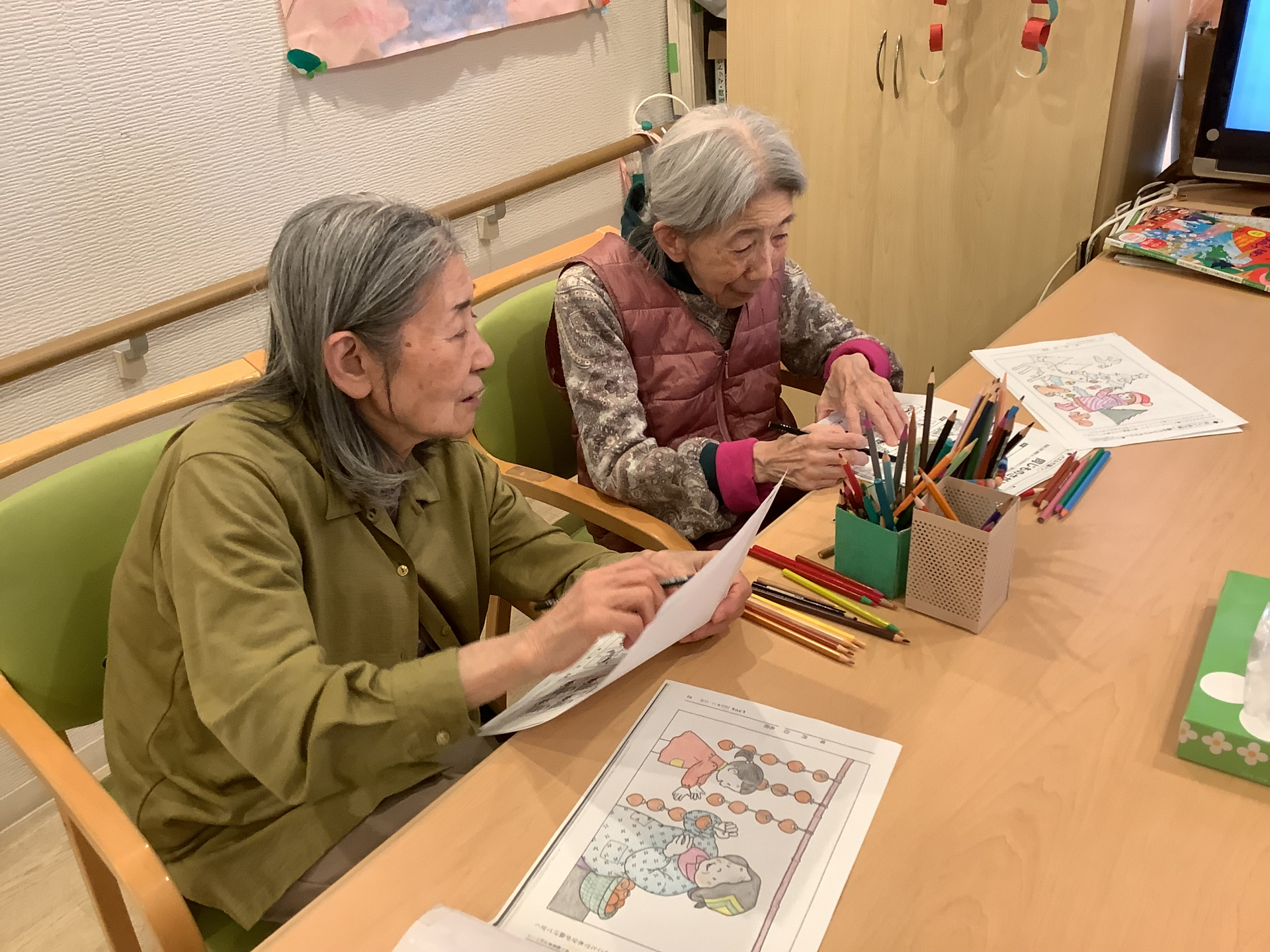 一人ひとりに合った脳トレクイズや塗り絵をご用意して、