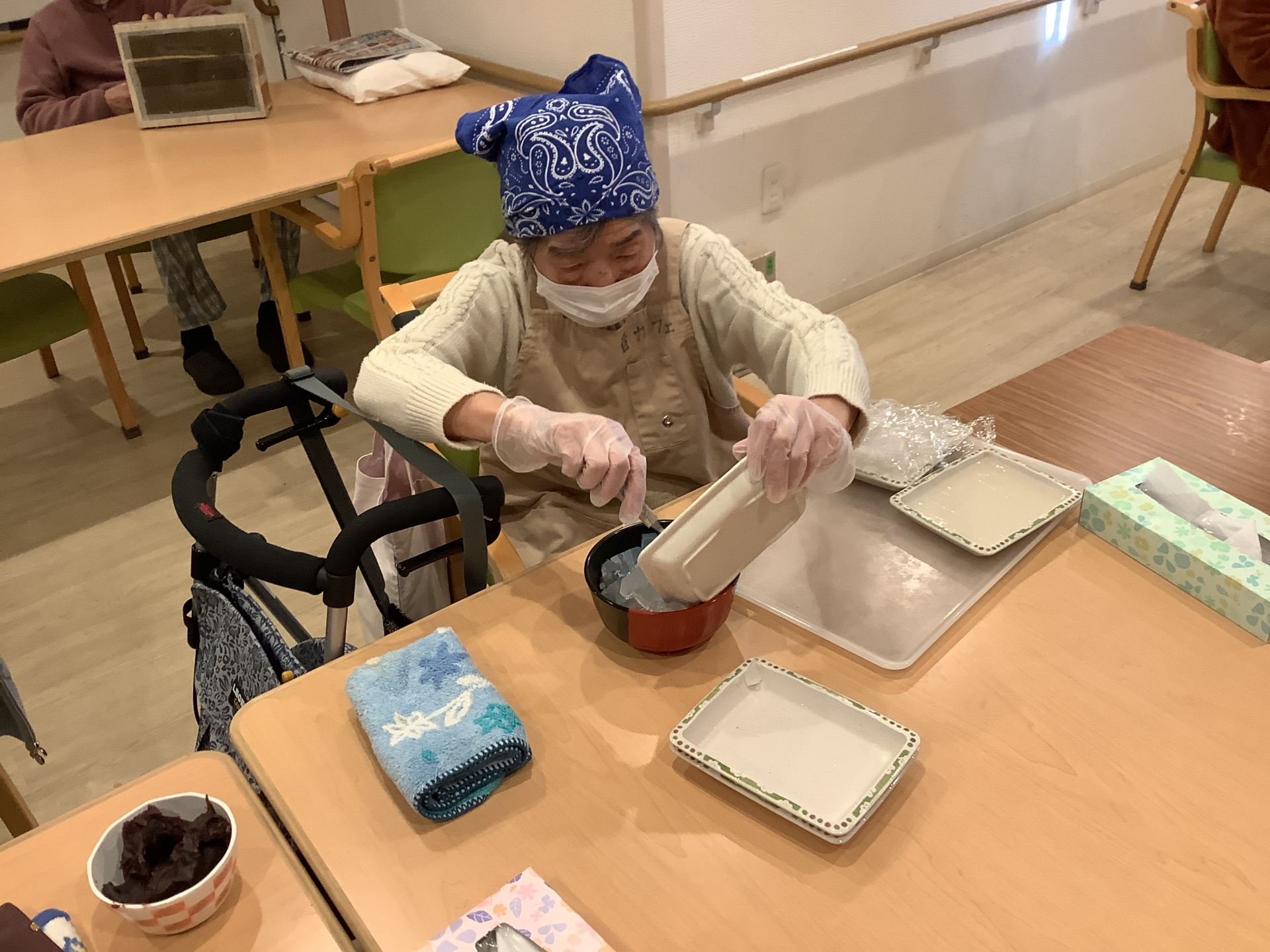 今月は我々がおやつの担当になりましたので、あんみつを作りました!