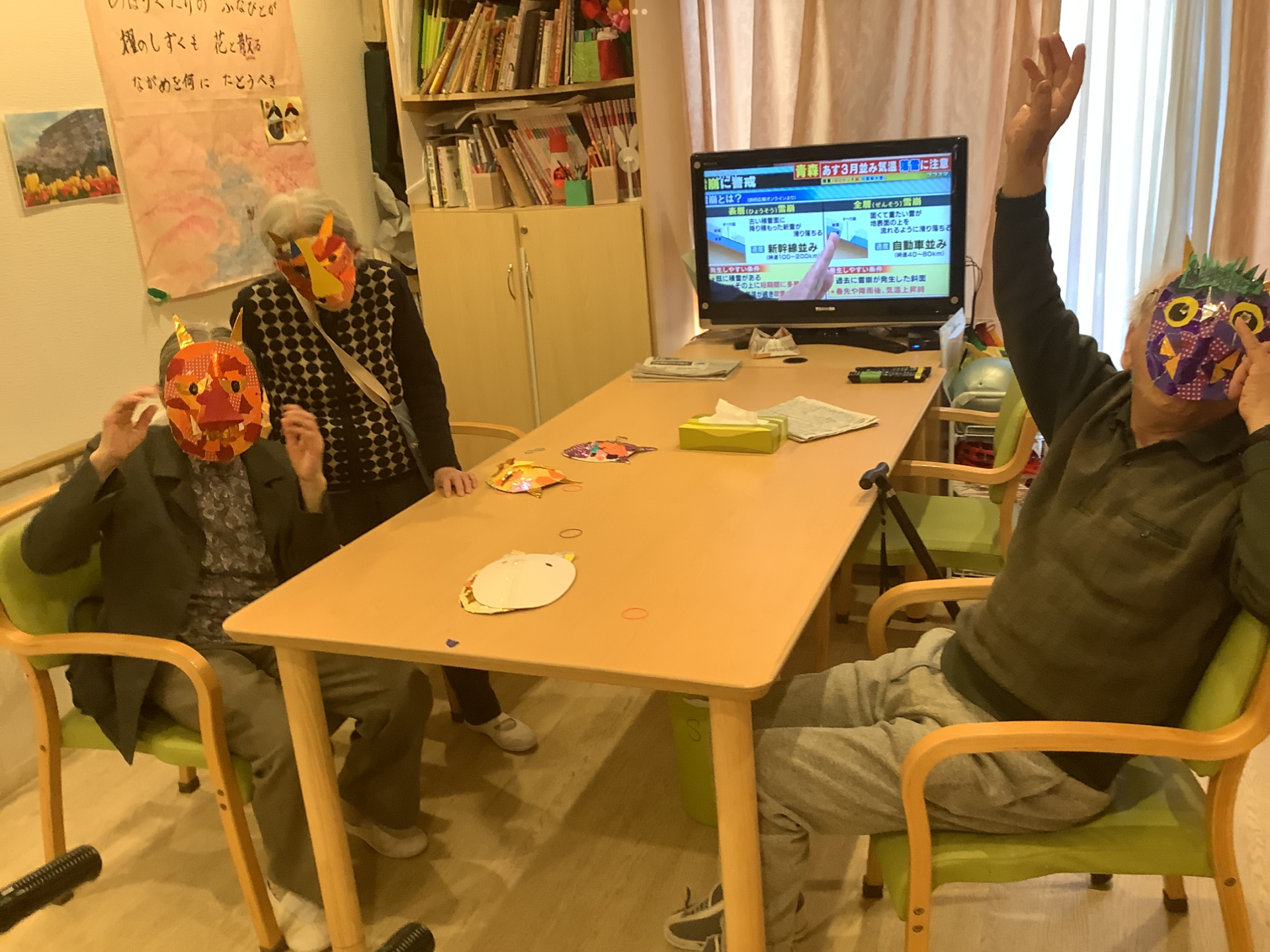 節分では、皆さまで鬼のお面を作りました!
