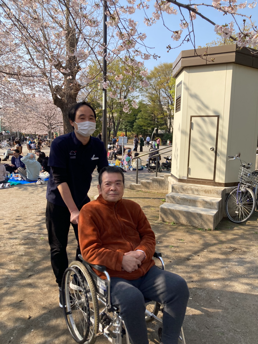 大きな桜の木に大興奮の利用者様(^ ^)