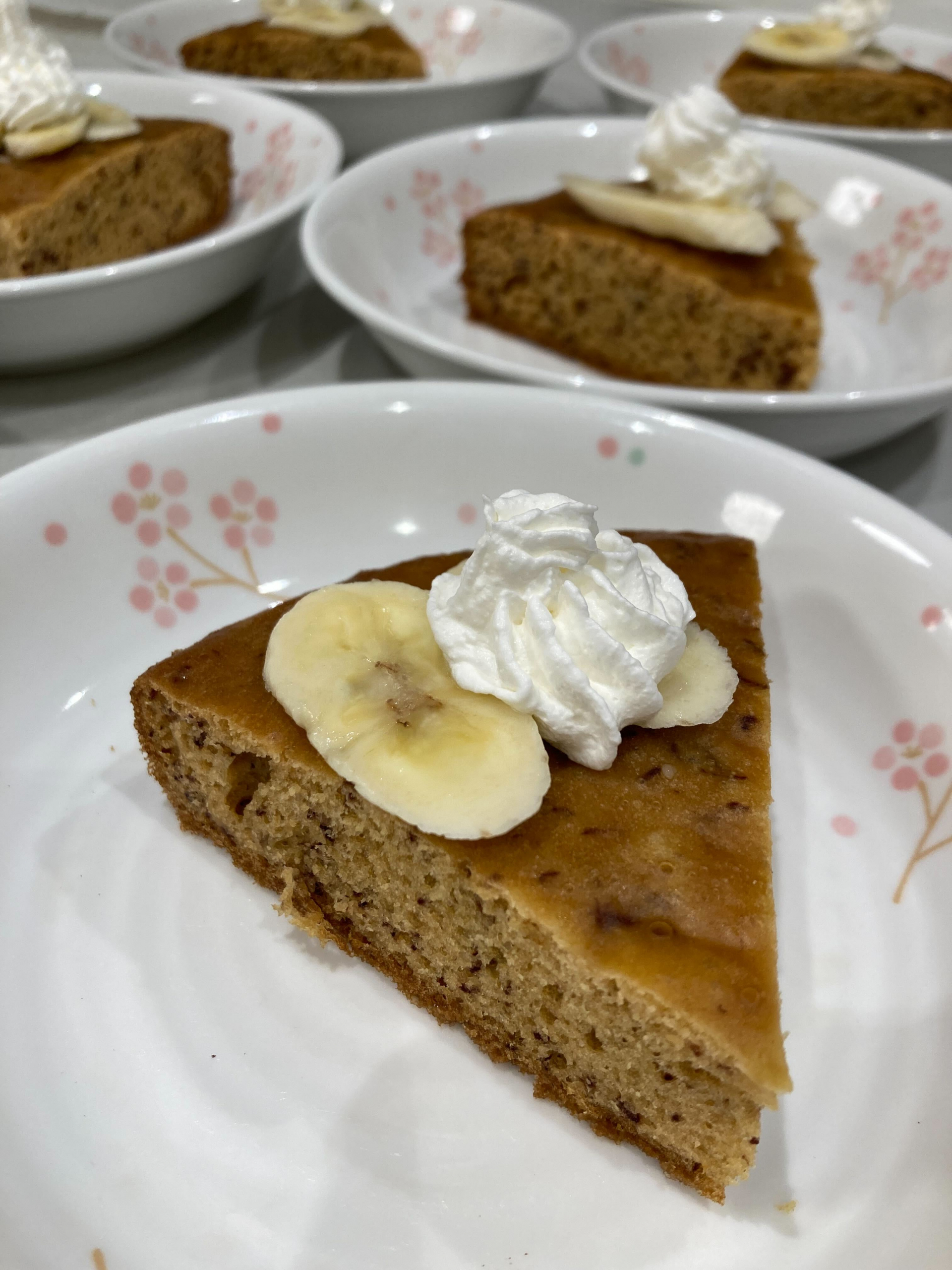 しっとりふわふわのバナナケーキに、ホイップクリームを添えて、ちょっぴり贅沢なおやつに