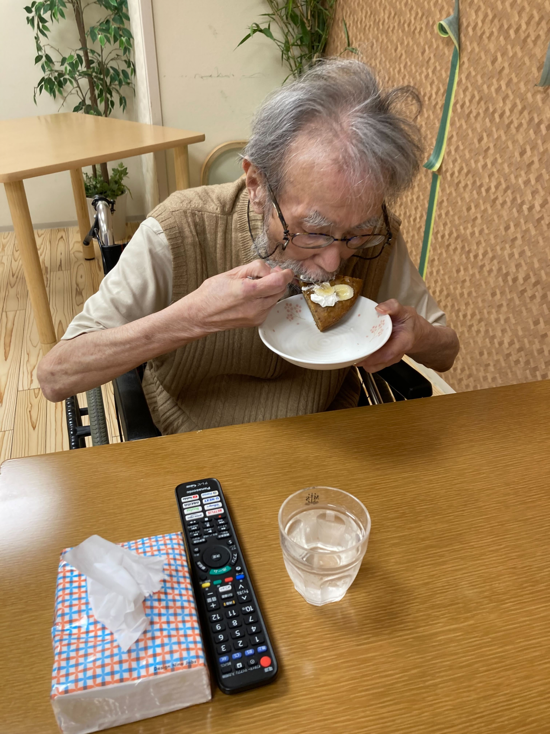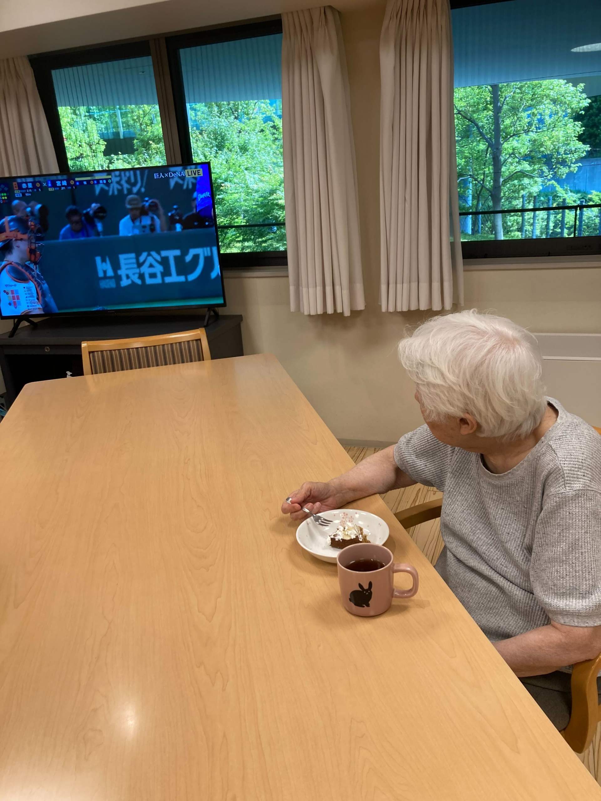 テレビを見ながら笑顔で「美味しいね~」とお話される(*^-^*)